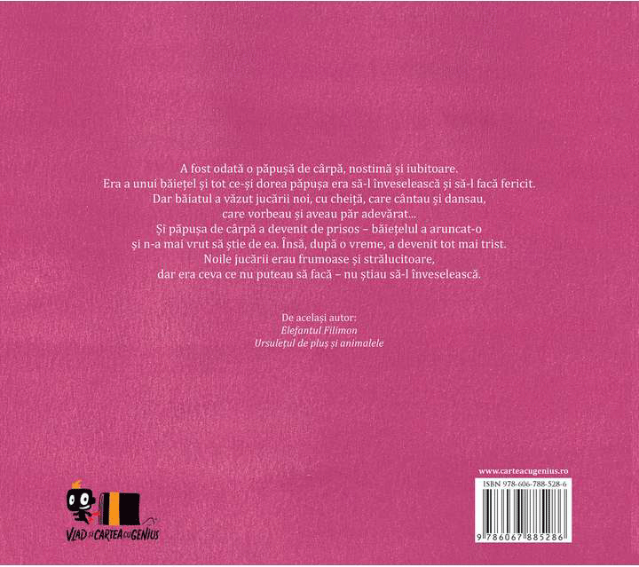 A fost odată o păpușă de cârpă, nostimă și iubitoare. Era a unui băiețel și tot ce-și dorea păpușa era să-l înveselească și să-l facă fericit. Dar băiatul a văzut jucării noi, cu cheiță, care cântau și dansau, care vorbeau și aveau păr adevărat... Și păpușa de cârpă a devenit de prisos – băiețelul a aruncat-o și n-a mai vrut să știe de ea. Însă, după o vreme, a devenit tot mai trist. Noile jucării erau frumoase și strălucitoare, dar era ceva ce nu puteau să facă – nu știau sa-l înveselească.