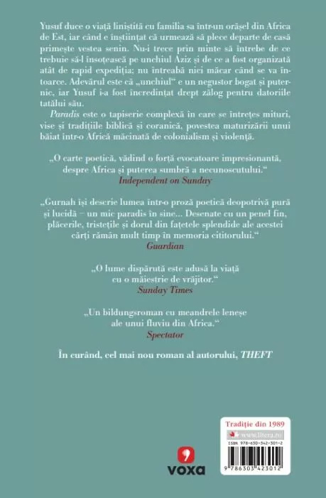 „Gurnah pătrunde ca nimeni altul esența relațiilor de familie, în care încorporează straturile istoriei cu eleganță și căldură.“ The Times