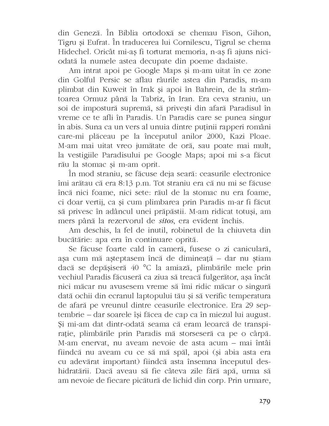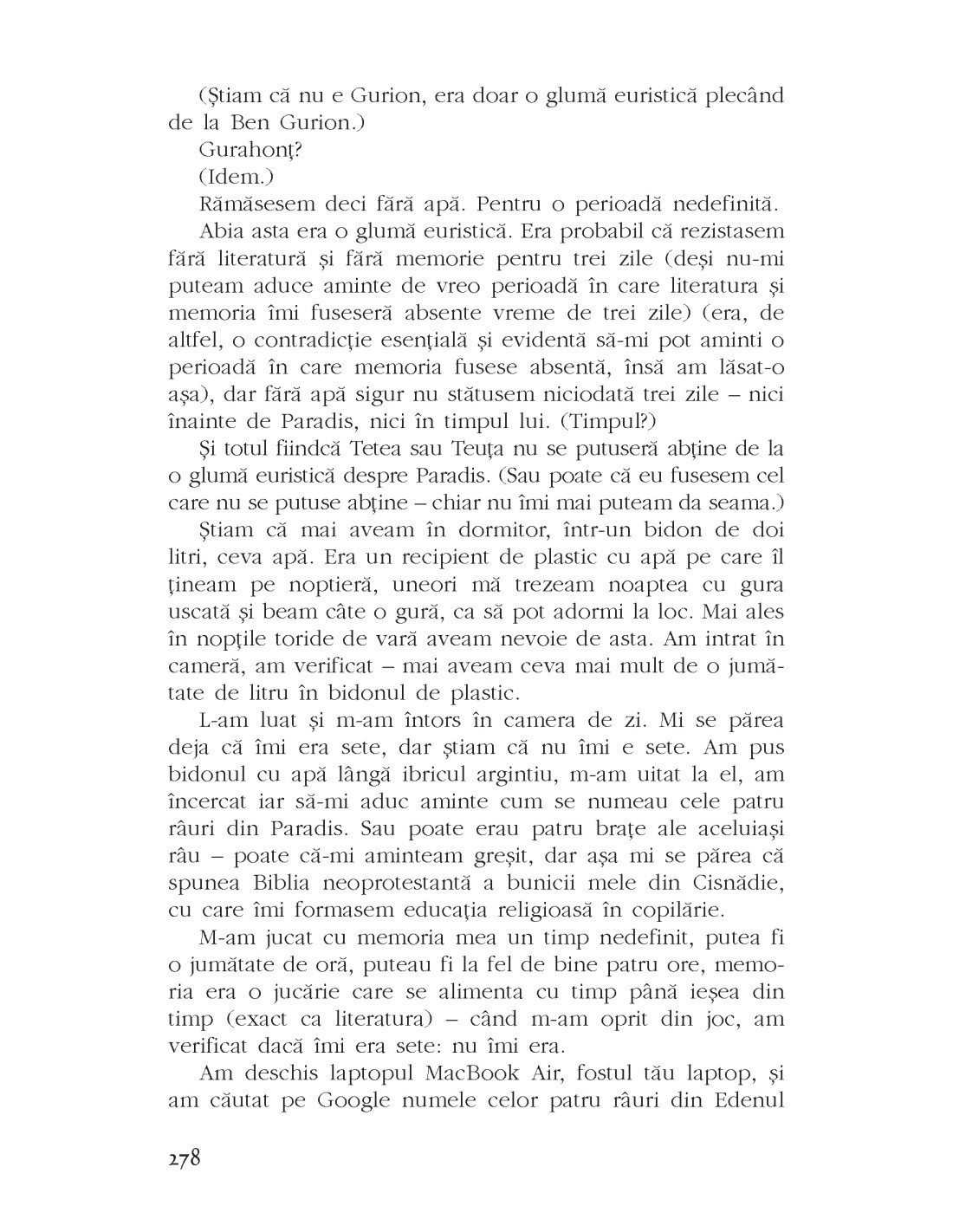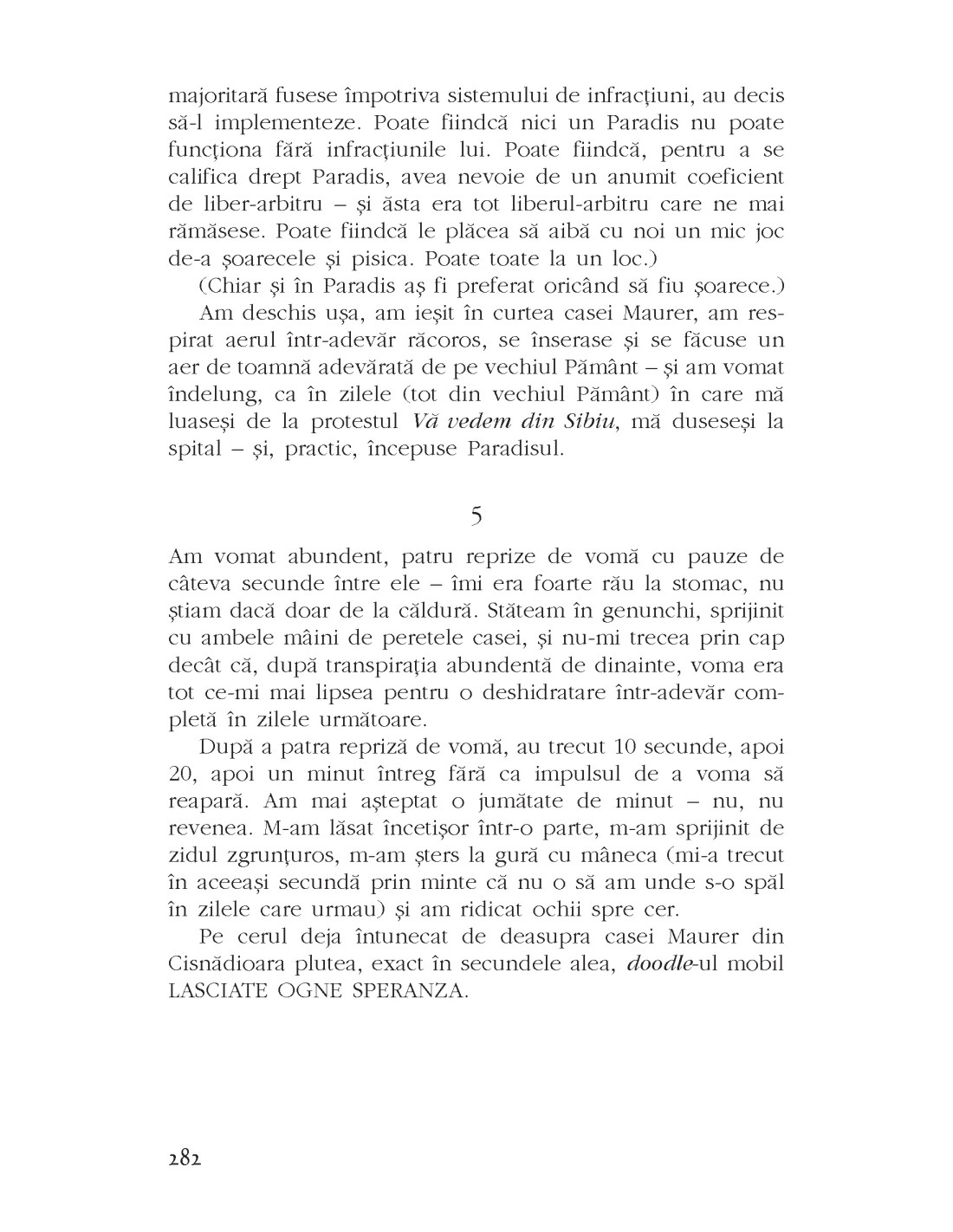 „Un mitograf al Paradisului care lucrează la o nouă dogmă antisperanță într-un viitor pustiit de pandemie, dar care, în mod paradoxal, e prins în ghearele unei nostalgii nevindecabile a cărei sursă este iubirea pierdută: cel mai dantesc scenariu cu putință camuflat într-un roman de literatură speculativă livresc până-n măduva paginii. «Un creier vechi» prins într-un corp nemuritor, personajul lui Radu Vancu practică un ketman al eternului prezent, fiind și un Ianus Bifrons blocat între timpuri: unica lui sămânță de autenticitate se regăsește în religia iubirii din trecut, pe când inteligența și erudiția îi sunt puse la muncă în slujba religiei prezentului ce luptă împotriva speranței. Un roman care mi-a amintit, prin ton, umor și inventivitate, de Simfonia itinerantă a lui Emily St. John Mandel sau, dacă mi-e permis, de un Mad Max intelectualizat care străbate lumea din Drumul lui Cormac McCarthy. O lume românească, însă, dublă distopie!” (Bogdan-Alexandru Stănescu)