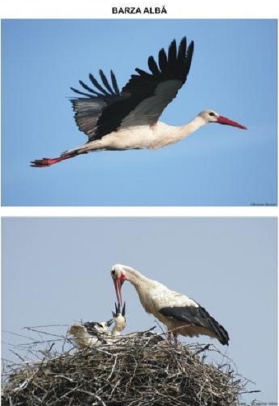 Setul PASARI CALATOARE contine plansele: barza alba - 2 planse; cocorul mare - 2 planse; cucul - 1 plansa; lebada cucuiata - 2 planse; pelicanul comun - 2 planse; privighetoarea de zavoi - 1 plansa; pupaza - 1 plansa; randunica - 2 planse. Fotografiile au fost astfel alese incat sa surprinda cat mai multe aspecte din viata pasarilor calatoare (pasari-pereche, inmultirea, hrana, mediul de viata etc.).