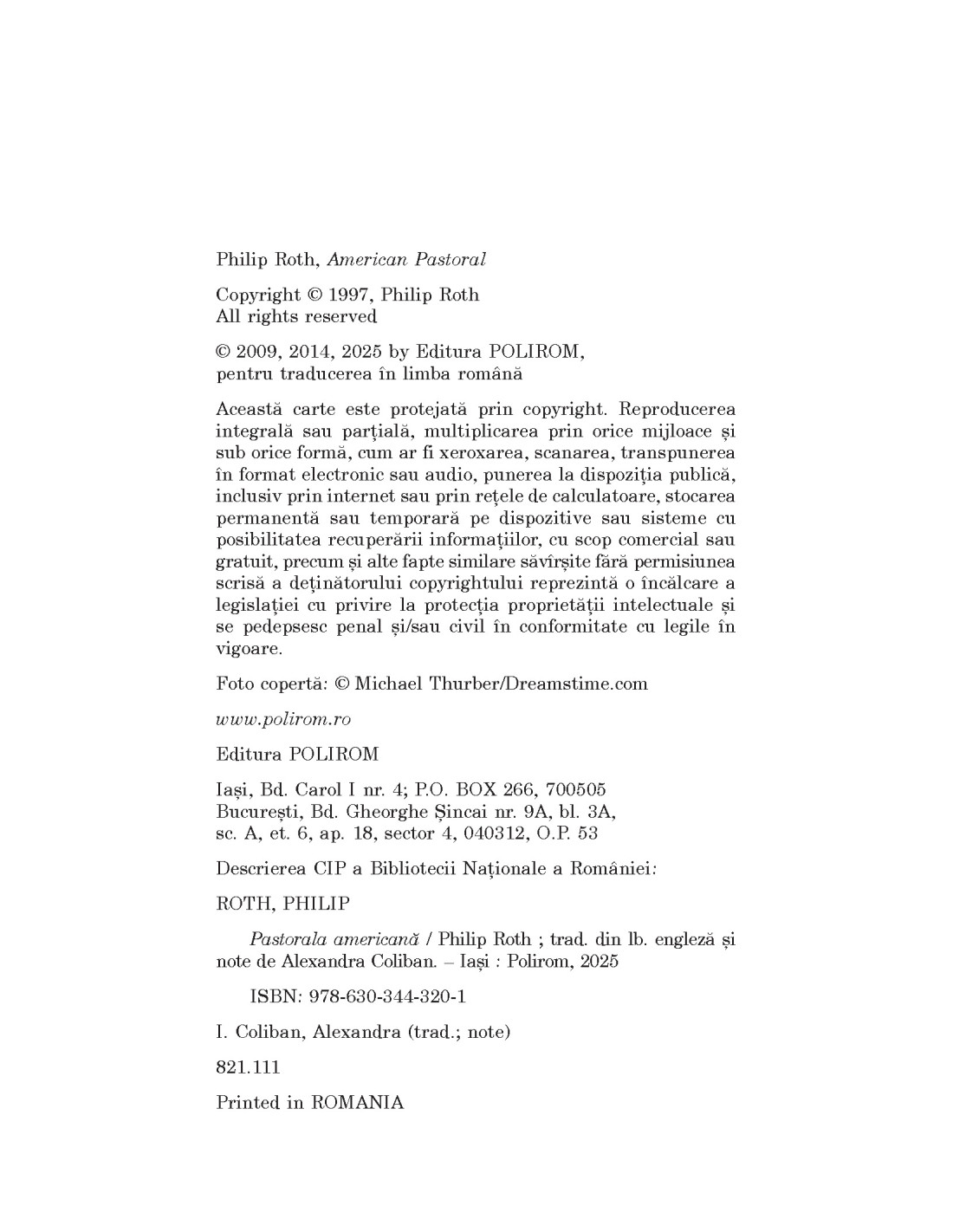 Philip ROTH s‑a născut în Newark, New Jersey, în 19 martie 1933. Al doilea copil al unui cuplu de americani din a doua generaţie, Bess şi Herman Roth, Philip Roth a crescut în marea comunitate evreiască din Weequahic, cartier la care avea să revină în scrierile lui. După absolvirea liceului Weequahic în 1950, a studiat la Bucknell University din Pennsylvania şi la University of Chicago, unde a primit o bursă pentru a‑şi definitiva masterul în literatură engleză. În 1959 a publicat La revedere, Columbus – o selecţie de povestiri şi o nuvelă –, pentru care a primit National Book Award. Zece ani mai tîrziu, publicarea celui de‑al patrulea roman al său, Complexul lui Portnoy, i‑a adus lui Roth aprecierea criticii şi succesul comercial, consolidîndu‑i poziţia printre cei mai buni scriitori tineri americani. Roth este autorul a treizeci şi una de cărţi, printre ele numărîndu‑se şi cele care urmăresc destinul lui Nathan Zuckerman şi pe al unui narator imaginar pe nume Philip Roth, prin care scriitorul a explorat şi a dat glas complexităţii vieţii americane în secolele XX şi XXI. Contribuţia durabilă a lui Roth la literatură a fost larg recunoscută de‑a lungul vieţii sale, nu doar în America, ci şi în străinătate. Printre alte distincţii, a primit Pulitzer Prize, International Man Booker Prize, a fost de două ori cîştigător al National Book Critics Circle Award şi National Book Award şi i‑au fost conferite distincţiile National Medal of Arts şi National Humanities de preşedinţii Clinton şi Obama. Philip Roth a murit în 22 mai 2018, la vîrsta de optzeci şi cinci de ani, la şase ani după ce renunţase la scris.