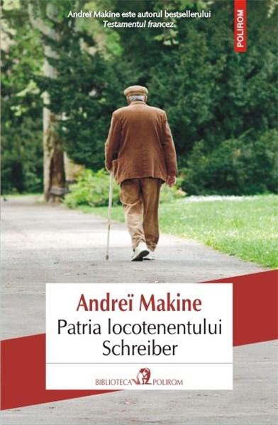 O carte hibrid, melanj de memorii si fictiune, distinsa chiar in anul aparitiei cu Prix Wartburg de Litterature, Patria locotenentului Schreiber (2014) este rodul intilnirii lui Makine cu Jean-Claude Servan-Schreiber, om politic si jurnalist francez dintr-o familie ilustra, ajuns deja la o virsta venerabila. Impresionat de viata tumultuoasa a acestuia si de eroismul de care el si camarazii sai au dat dovada in timpul celui de-al Doilea Razboi Mondial, scriitorul l-a incurajat sa-si astearna memoriile pe hirtie, sperind ca, gratie influentei sale in lumea literara, il va ajuta sa le publice. Demersurile lui s-au lovit insa de reticenta editorilor de a publica o carte cu un subiect atit de riscant. Prin urmare, Makine a hotarit sa scrie el insusi despre viata locotenentului Schreiber –povestea prieteniei dintre un tinar scriitor plin de succes intr-o tara care nu este a lui si un batrin luptator in cel de-al Doilea Razboi Mondial si in Rezistenta, dar si istoria secolului trecut, vazuta prin ochii unui om pentru care locurile si intimplarile de altadata ramin mereu vii si pline de semnificatie.