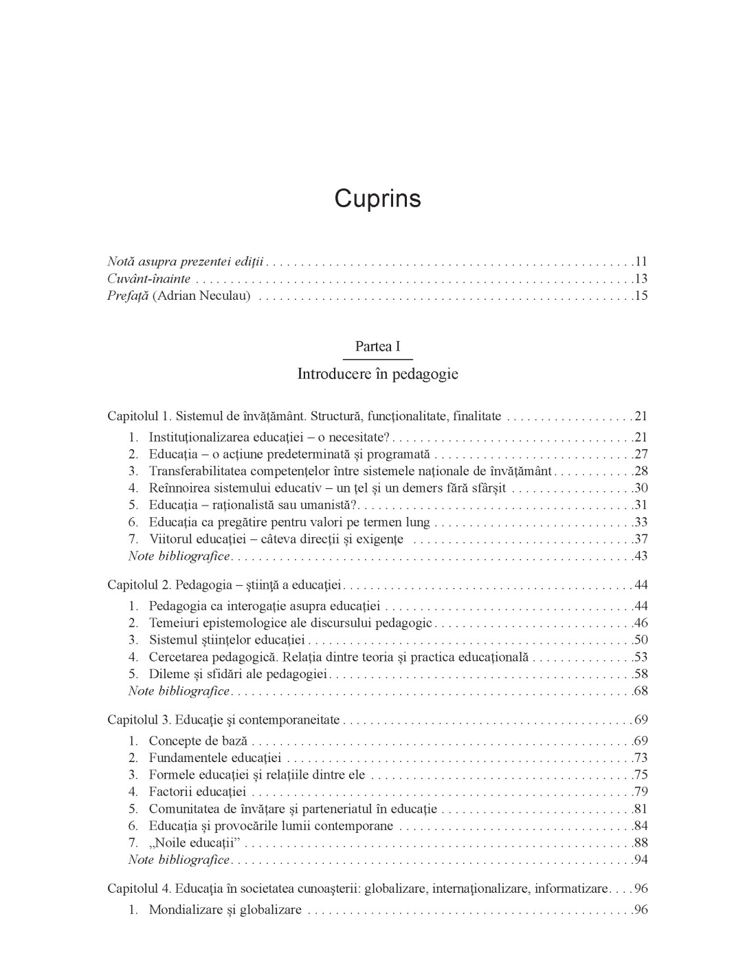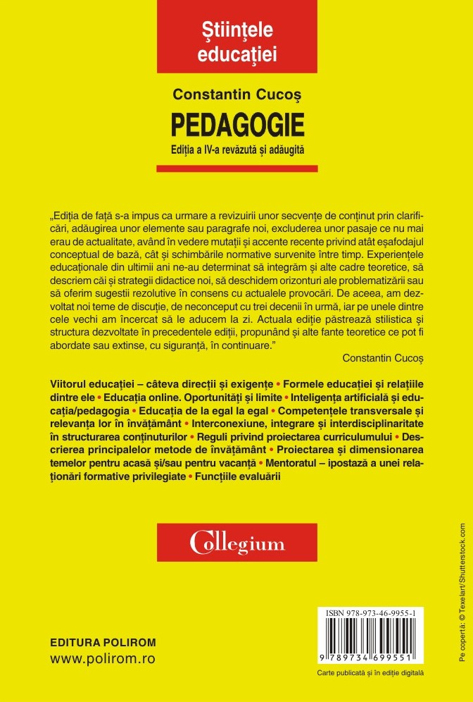 „Ediția de față s-a impus ca urmare a revizuirii unor secvențe de conținut prin clarificări, adăugirea unor elemente sau paragrafe noi, excluderea unor pasaje ce nu mai erau de actualitate, având în vedere mutații și accente recente privind atât eșafodajul conceptual de bază, cât și schimbările normative survenite între timp. Experiențele educaționale din ultimii ani ne-au determinat să integrăm și alte cadre teoretice, să descriem căi și strategii didactice noi, să deschidem orizonturi ale problematizării sau să oferim sugestii rezolutive în consens cu actualele provocări. De aceea, am dezvoltat noi teme de discuție, de neconceput cu trei decenii în urmă, iar pe unele dintre cele vechi am încercat să le aducem la zi. Actuala ediție păstrează stilistica și structura dezvoltate în precedentele ediții, propunând și alte fante teoretice ce pot fi abordate sau extinse, cu siguranță, în continuare.” (Constantin Cucoș)