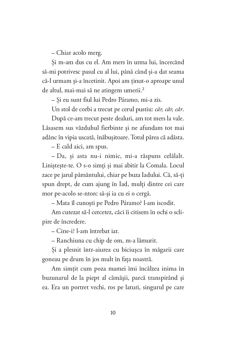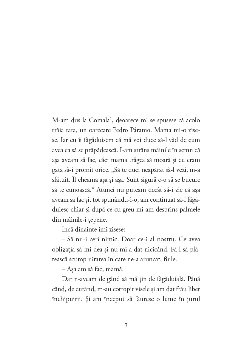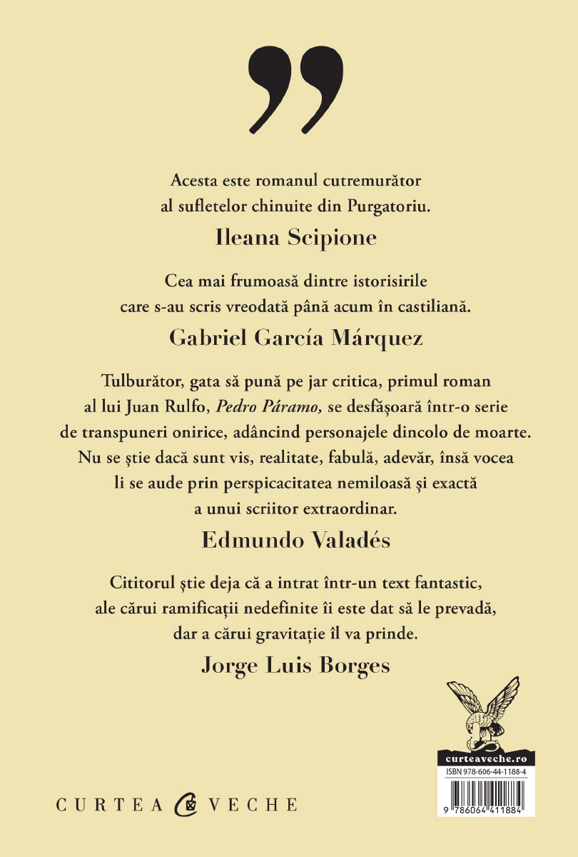 Pedro Páramo este primul roman scris de Juan Rulfo (1955). De la apariția lui, felul în care s-a scris literatură în limba spaniolă s-a schimbat radical. Modul excepțional în care este dezvăluit sufletul mexican poate fi propriu oricărei alte culturi. Personajele sale, reale, ca și cum ar fi trăit în această lume, ne cer socoteală fără să aibă nevoie de o prezență concretă a autorului, în același timp trăind în lumi îndepărtate. Totul până când descoperim ceea ce n-am fi bănuit niciodată.