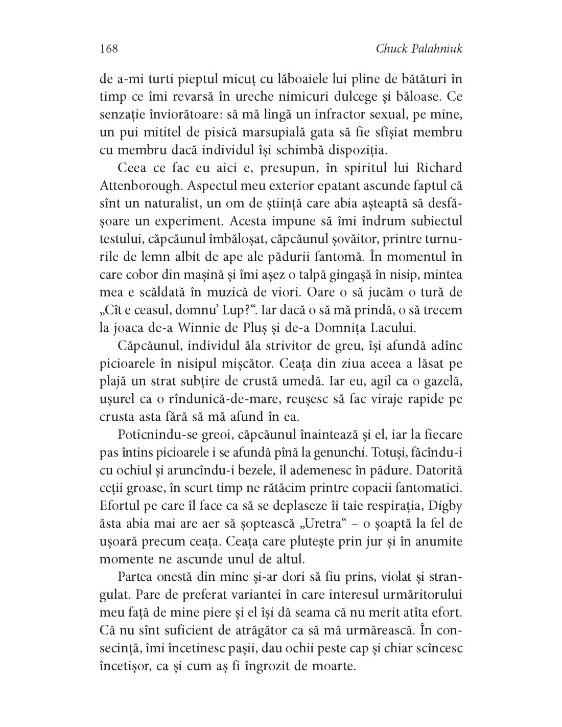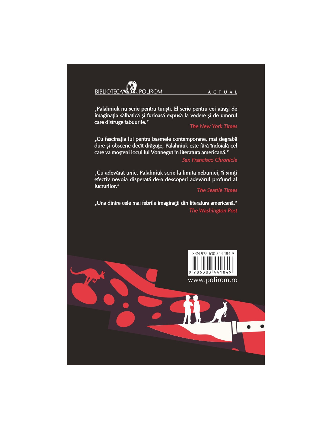 „Palahniuk nu scrie pentru turişti. El scrie pentru cei atraşi de imaginaţia sălbatică şi furioasă expusă la vedere şi de umorul care distruge tabuurile.”