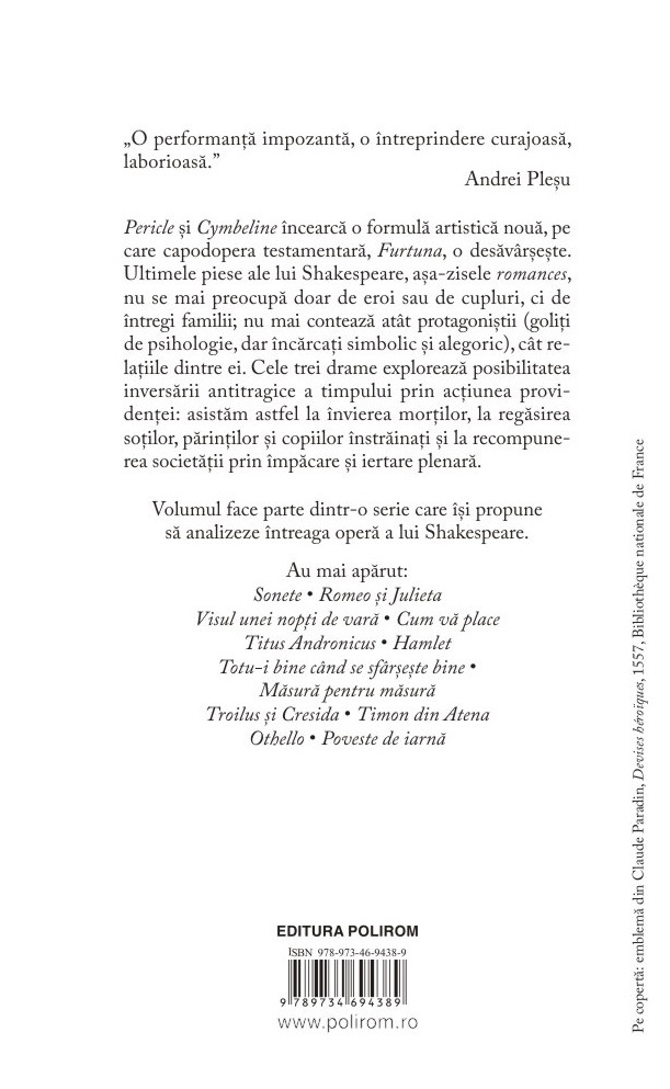 „Pericle. Cymbeline. Furtuna”  în librăriile Cărturești