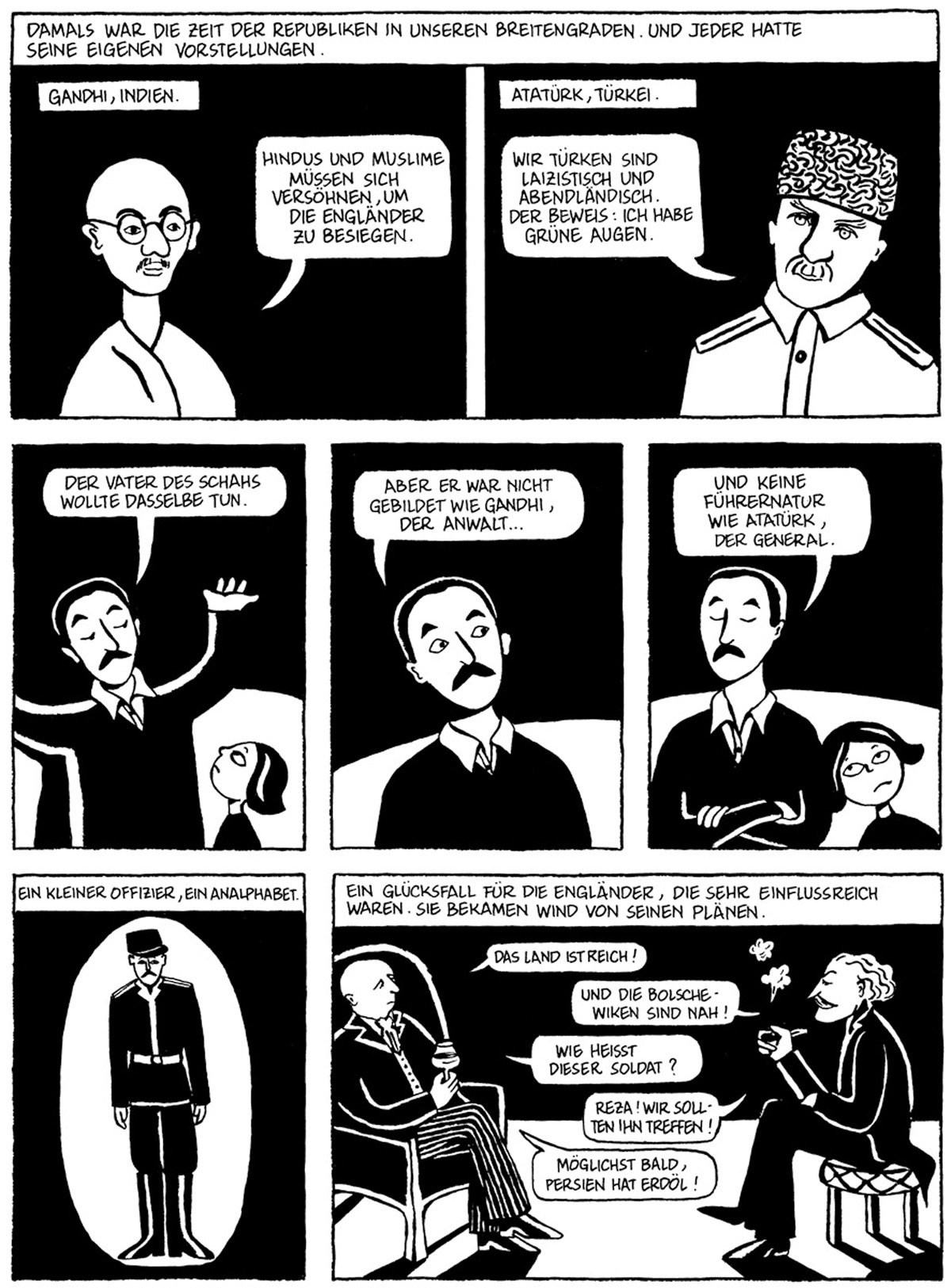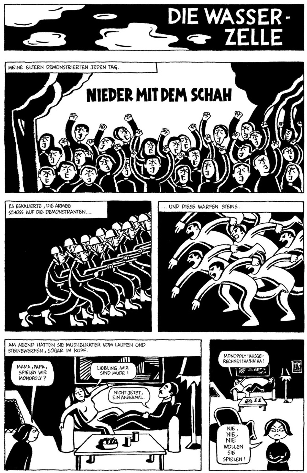 Aus der Perspektive eines kleinen Mädchens erzählt die gebürtige Iranerin Marjane Satrapi von der islamischen Revolution von 1979 und vom Krieg mit dem Irak - und zwar in einer einfachen, aber effektiven Bildsprache.