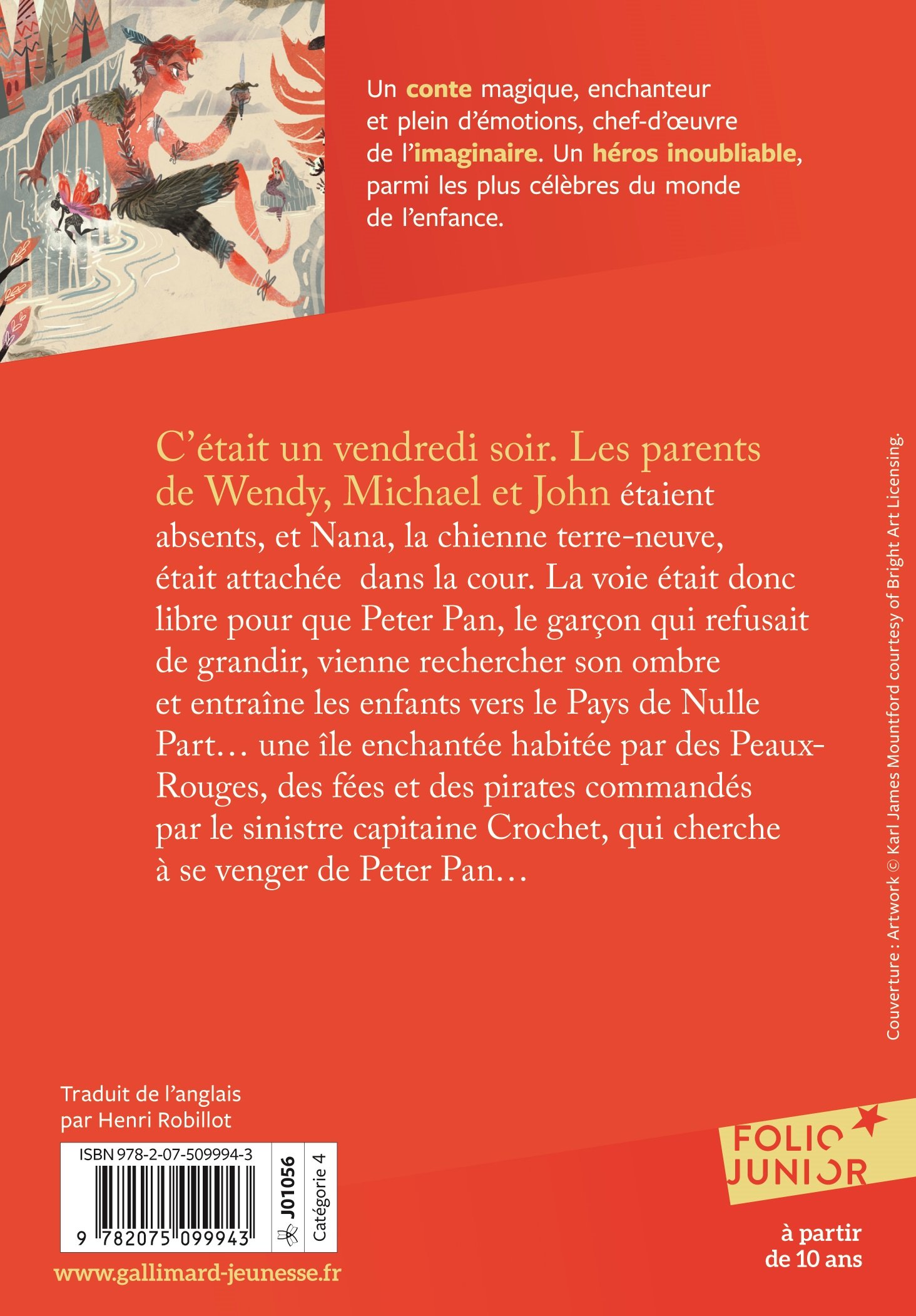 C'était un vendredi soir. Les parents de Wendy, Michael et John étaient absents, et Nana, la chienne terre-neuve, était attachée dans la cour. La voie était donc libre pour que Peter Pan, le garçon qui refusait de grandir, vienne rechercher son ombre et entraîne les enfants vers le Pays de Nulle Part... une île enchantée habitée par des Peaux- Rouges, des fées et des pirates commandés par le sinistre capitaine Crochet, qui cherche à se venger de Peter Pan...