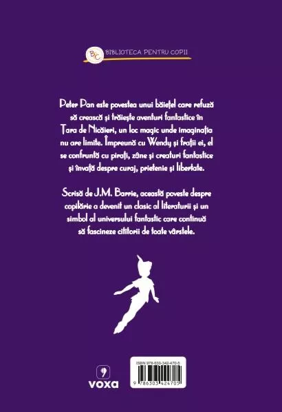 Scrisă de J.M. Barrie, această poveste despre copilărie a devenit un clasic al literaturii și un simbol al universului fantastic care continuă să fascineze cititorii de toate vârstele.