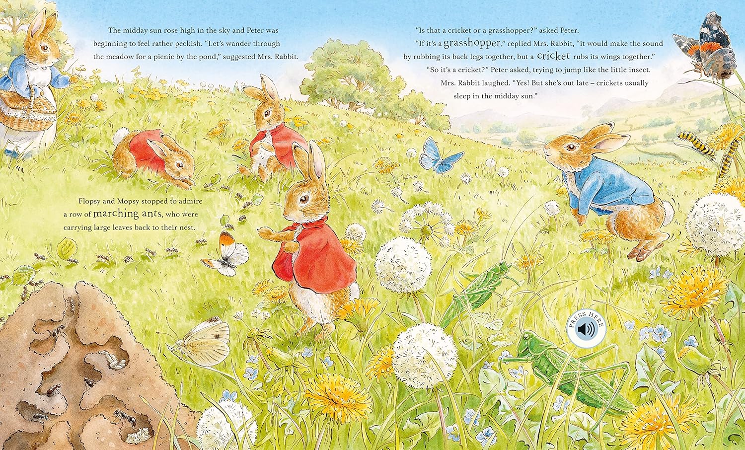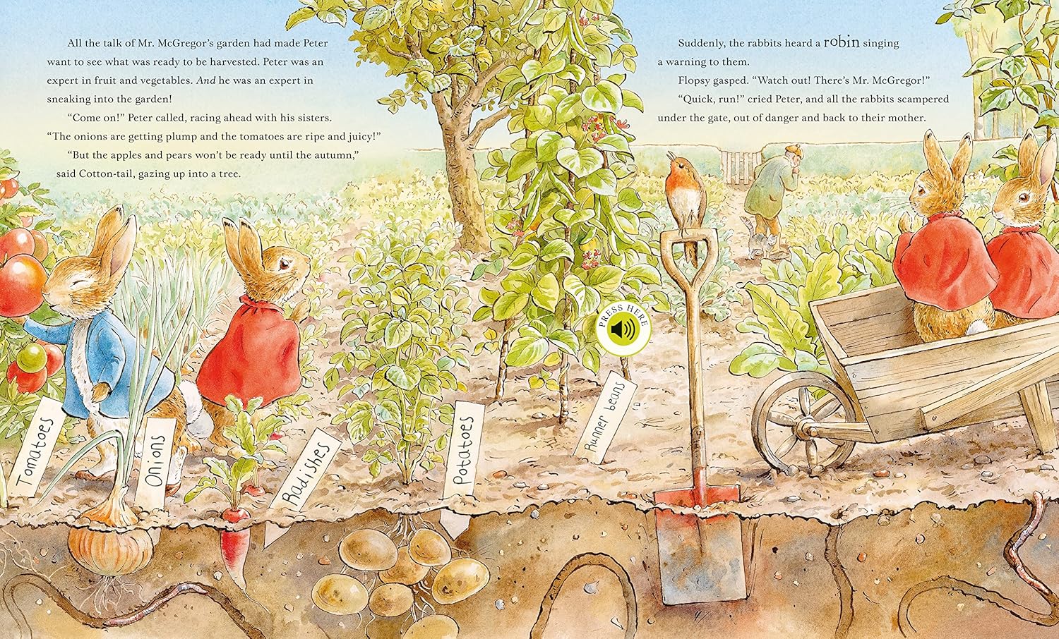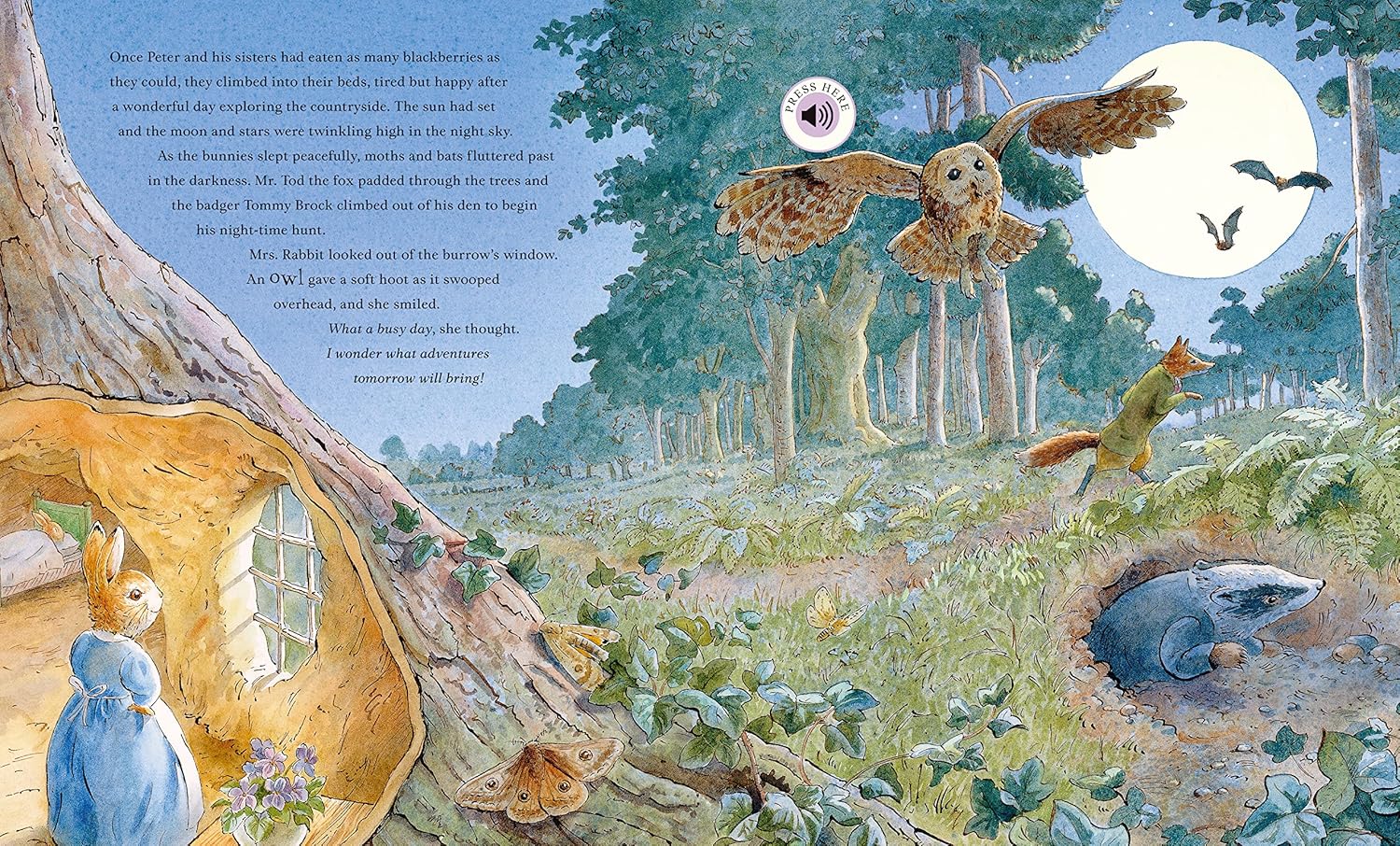 Push the button on every page of this Peter Rabbit story book to hear the sounds of the countryside!