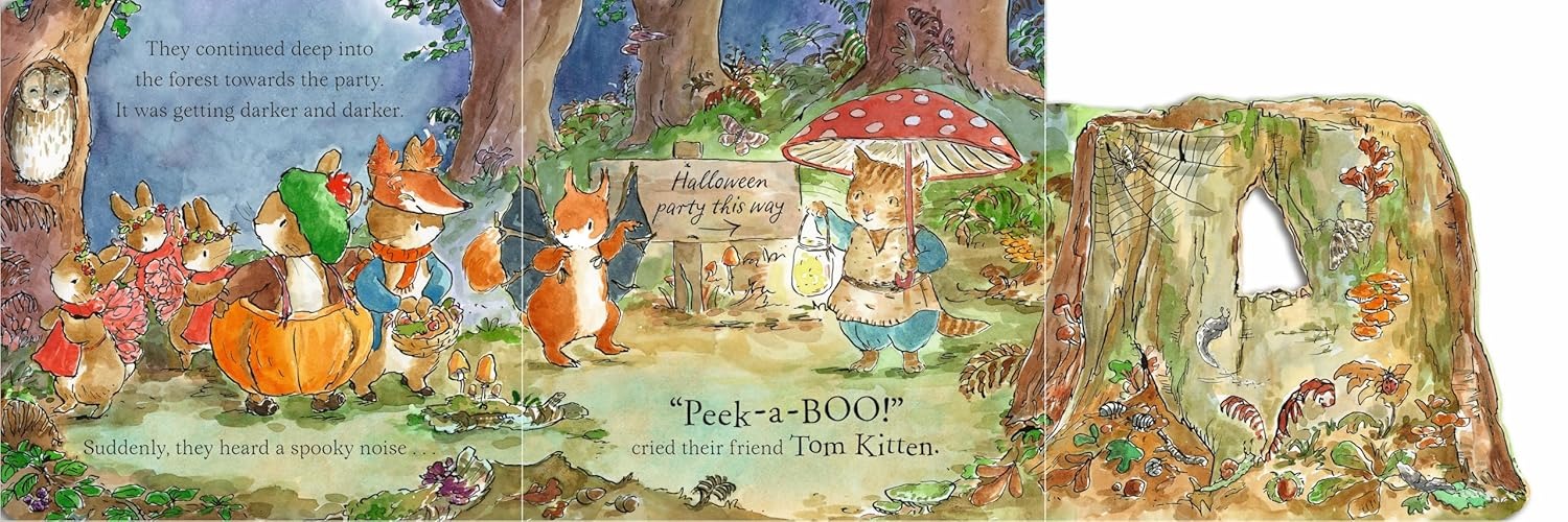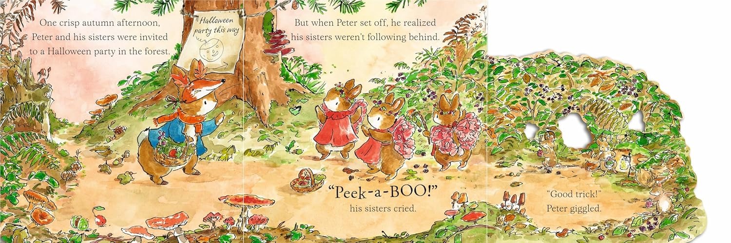 It's Halloween, and Peter Rabbit is going to a party in the forest! As Peter ventures through the woods, who will surprise him with a spooky peek-a-BOO at every turn?