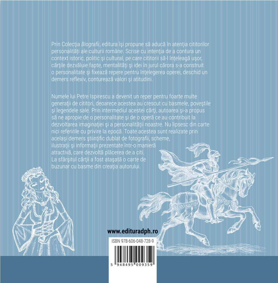 Numele lui Petre Ispirescu a devenit un reper pentru foarte multe generații de cititori, deoarece acestea au crescut cu basmele, poveștile și legendele sale. Prin intermediul acestei cărți, autoarea și-a propus să ne apropie de o personalitate și de o operă ce au contribuit la dezvoltarea imaginației și a personalității noastre. Nu lipsesc din carte nici referirile cu privier la epocă. Toate acestea sunt realizate prin același demers științific dublat de fotografii, scheme, ilustrații și informații prezentate într-o manieră atractivă, care dezvoltă plăcerea de a citi.