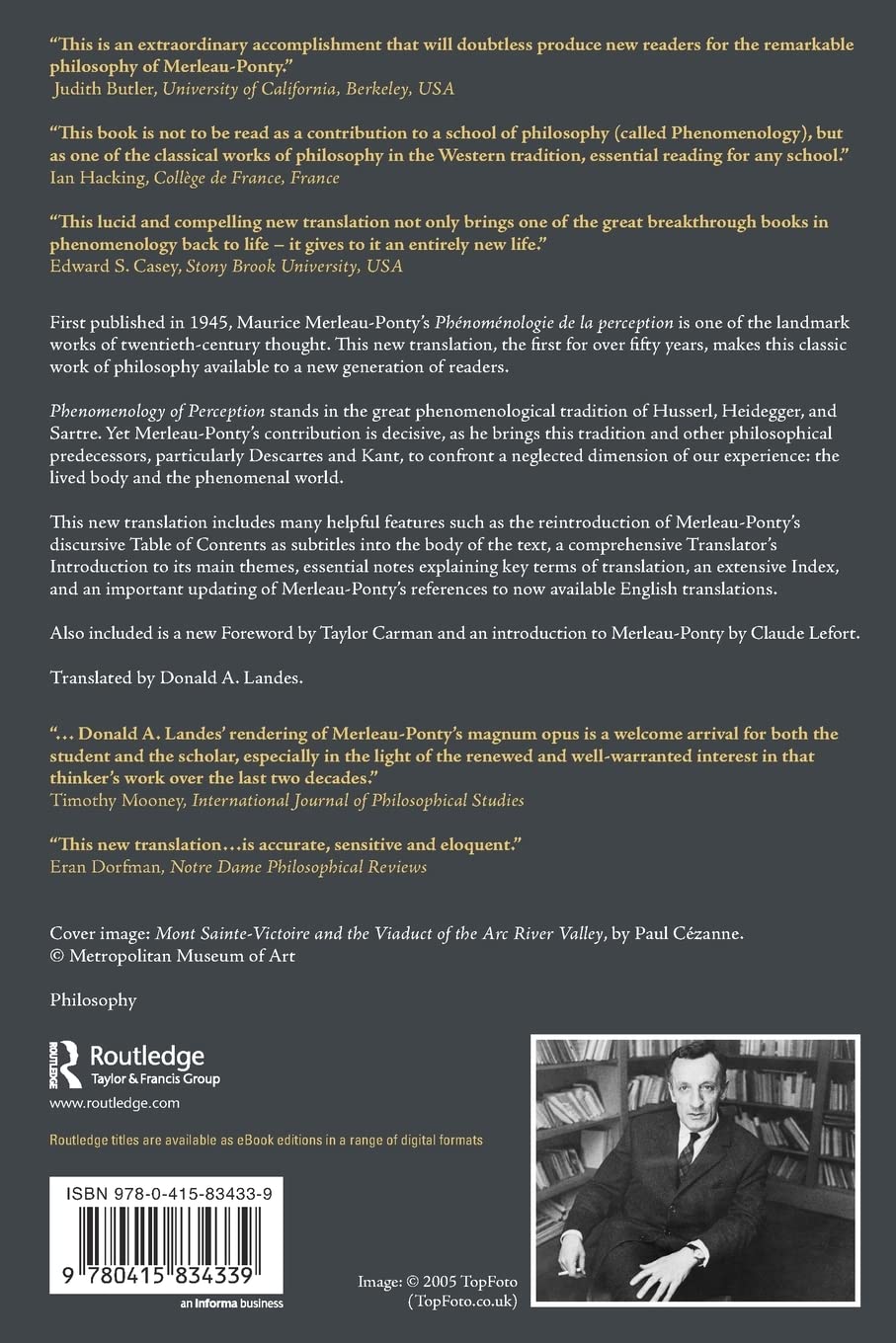 First published in 1945, Maurice Merleau-Ponty’s monumental Phénoménologie de la perception signalled the arrival of a major new philosophical and intellectual voice in post-war Europe. Breaking with the prevailing picture of existentialism and phenomenology at the time, it has become one of the landmark works of twentieth-century thought. This new translation, the first for over fifty years, makes this classic work of philosophy available to a new generation of readers.