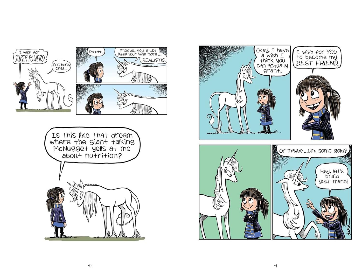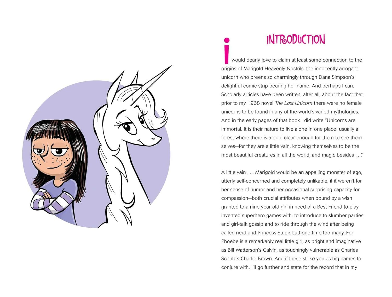 It all started when Phoebe skipped a rock across a pond and accidentally hit a unicorn in the face. Improbably, this led to Phoebe being granted one wish, and used it to make the unicorn, Marigold Heavenly Nostrils, her obligational best friend. But can a vain mythical beast and a nine-year-old daydreamer really forge a connection? Indeed they can, and that's how Heavenly Nostrils unfolds.