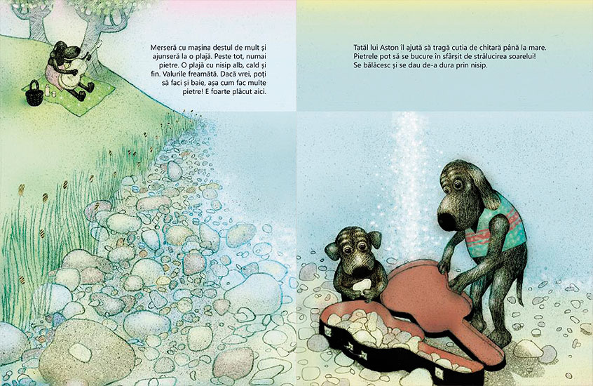 Pietrele lui Aston” (Astons Stenar), apărută în 2005, a fost imediat apreciată pentru poezia textului și magia ilustrațiilor care povestesc împreună, cu umor și duioșie, despre cum ar trebui să fie copilăria: liberă, nestingherită, plină de dragoste.