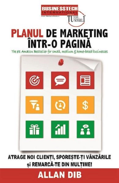 In Planul de marketing intr-o pagina Allan Dib - intreprinzator avand la activ infiintarea mai multor afaceri profitabile si cutezator om de marketing - iti dezvaluie o modalitate progresista de implementare a strategiilor care fac din crearea unui plan de marketing o procedura simpla si rapida. Ai nevoie, literalmente, de o singura pagina, impartita in noua cadrane. Cu ajutorul cartii lui Allan Dib, iti vei crea propriul plan de marketing sofisticat care sa te conduca de la zero la erou de marketing. Indiferent daca esti abia la inceput sau esti deja un antreprenor cu experienta, Planul de marketing intr-o pagina este cea mai simpla si rapida modalitate de a-ti crea "motorul" care sa iti propulseze cresterea afacerii.