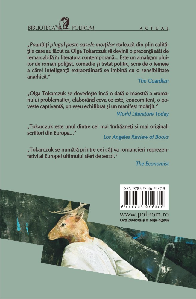 „Poartă-ţi plugul peste oasele morţilor etalează din plin calităţile care au făcut ca Olga Tokarczuk să devină o prezenţă atît de remarcabilă în literatura contemporană... Este un amalgam uluitor de roman poliţist, comedie şi tratat politic, scris de o femeie a cărei inteligenţă extraordinară se îmbină cu o sensibilitate anarhică.” (The Guardian)
