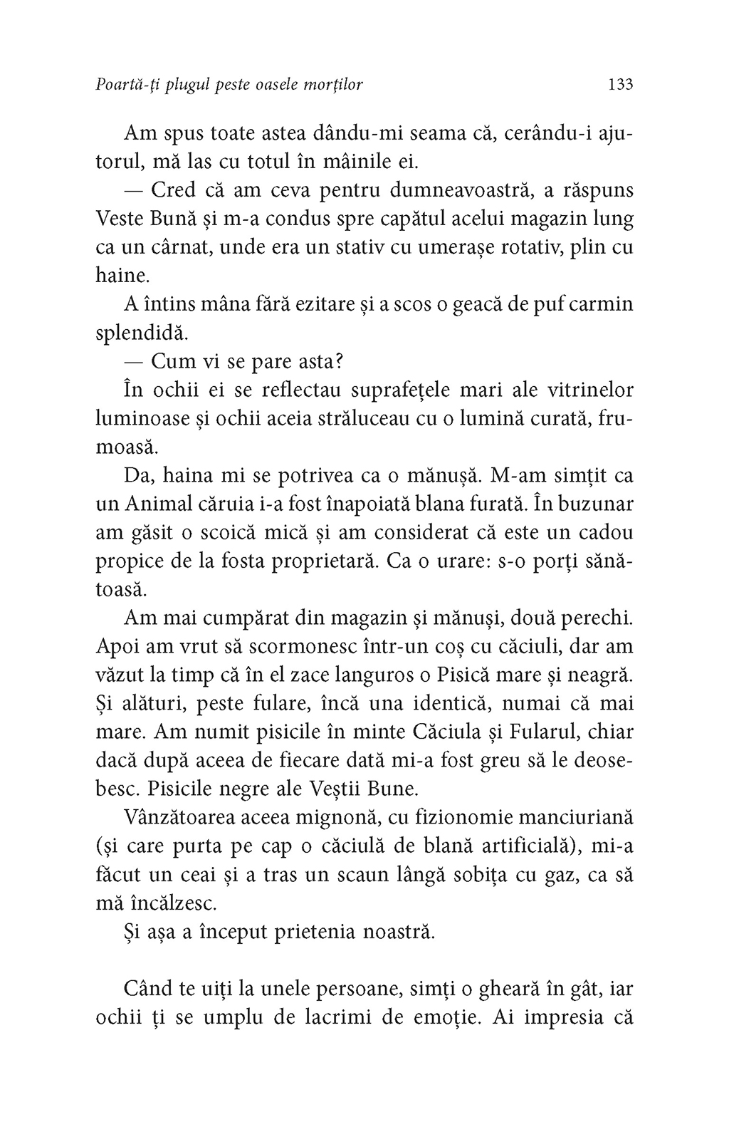 „Tokarczuk este unul dintre cei mai îndrăzneţi şi mai originali scriitori din Europa...” (Los Angeles Review of Books)