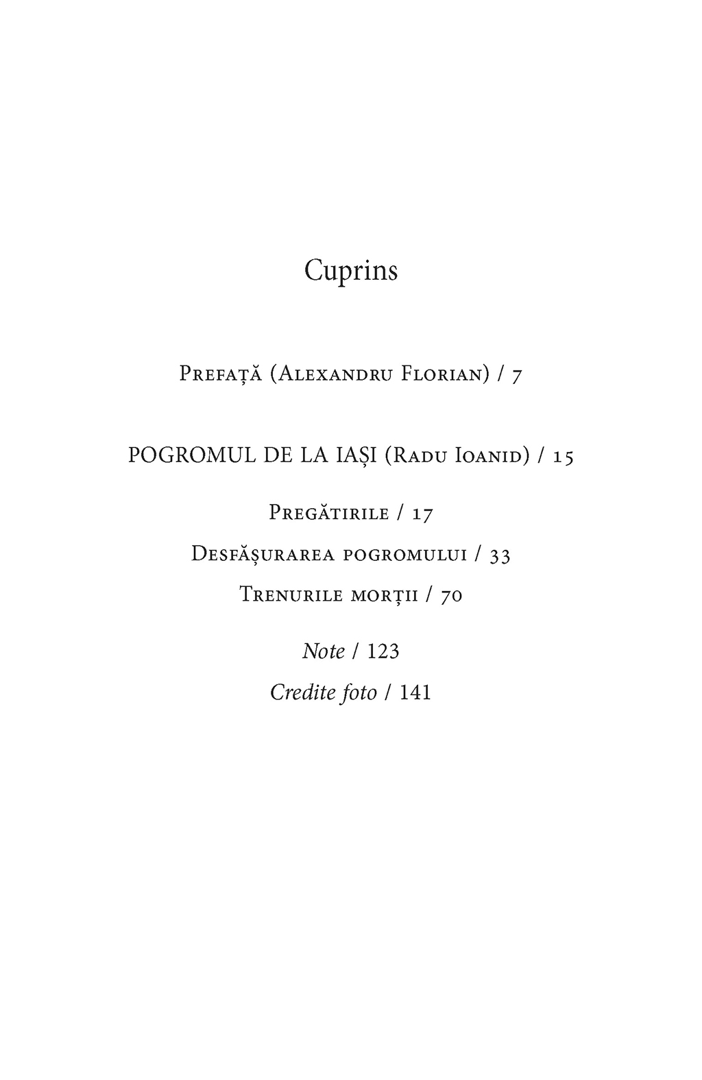 „Această carte aduce la lumină adevărul ascuns despre ce s-a întîmplat la Iaşi în cîteva zile din iunie 1941. Deşi numai 5,6% din populaţia ţării mai era evreiască după ciuntirea în anul anterior a României Mari, la Iaşi această minoritate era jumătate din populaţia oraşului. Cînd a izbucnit războiul, contra lor s-a dezlănţuit Holocaustul: 14.850 i-au căzut imediat victime, înainte de deportarea masivă spre Transnistria. Într-o societate în care antisemitismul îmbibase viaţa curentă şi era înteţit zilnic de presă, decizia militară de a deporta peste noapte această masă de evrei de lîngă frontieră, considerată ca risc de sabotaj în războiul din Răsărit care sta să înceapă, a creat panică şi a provocat violenţă. De la evacuare s-a ajuns la eliminare. La climatul de samavolnicie au contribuit îndeosebi legionarii şi cuziştii, liberi să devasteze, să jefuiască şi să ucidă. Această carte documentează nu doar crimele săvîrşite de conducători, ci şi pasivitatea înfricoşată a jumătate dintre ieşeni. Reunirea într-un volum a dovezilor, deplorabile şi dezonorante, e un act esenţial pentru întreaga memorie colectivă din România, care trebuie să păstreze vie remuşcarea.” (acad. Andrei Pippidi)