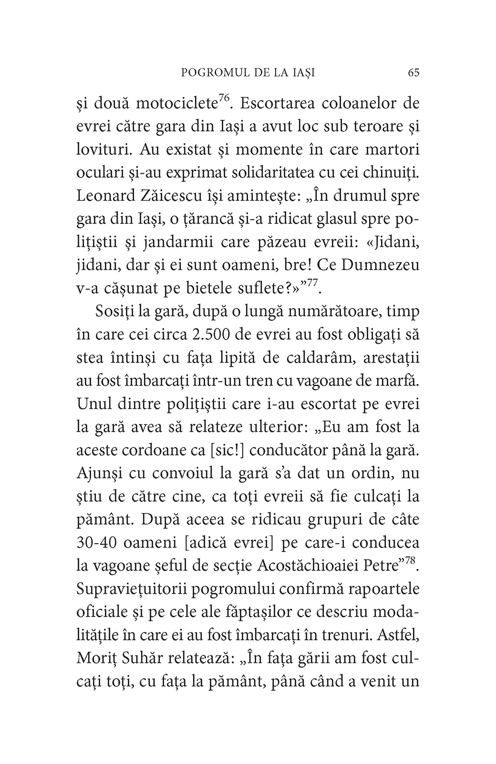 „Pogromul de la Iaşi este probabil cel mai cunoscut eveniment din toată istoria asasinatelor antievreieşti din România. A fost o izbucnire antisemită violentă, de mari proporţii, dar nu izolată şi nici întîmplătoare, înscriindu‑se într‑o serie lungă de omoruri în masă făptuite de unii români. Numărul victimelor pogromului de la Iaşi nu a putut fi stabilit cu exactitate. În funcţie de diverse surse, acesta oscilează între 3.200 şi 12.000 de persoane.” (Radu Ioanid)