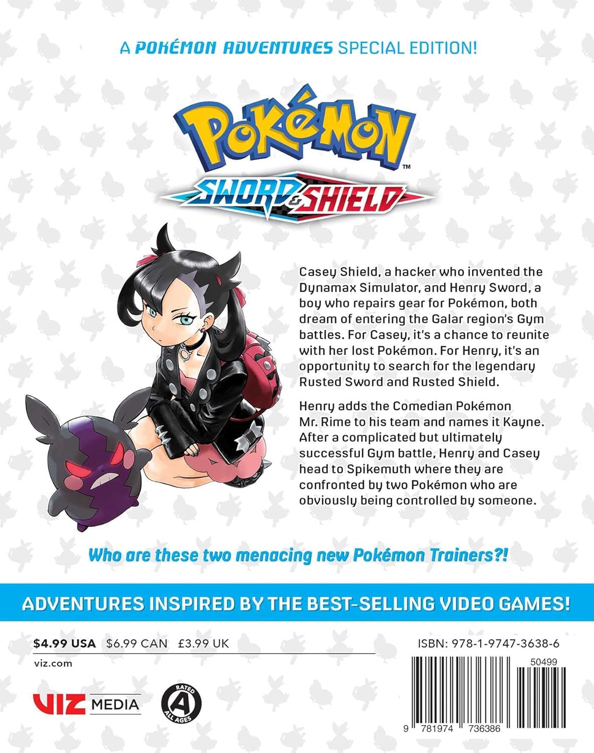 Casey Shield, a hacker who invented the Dynamax Simulator, and Henry Sword, a boy who repairs gear for Pokémon, both dream of entering the Galar region's Gym battles. For Casey, it's a chance to reunite with her lost Pokémon. For Henry, it's an opportunity to search for the legendary Rusted Sword and Rusted Shield.