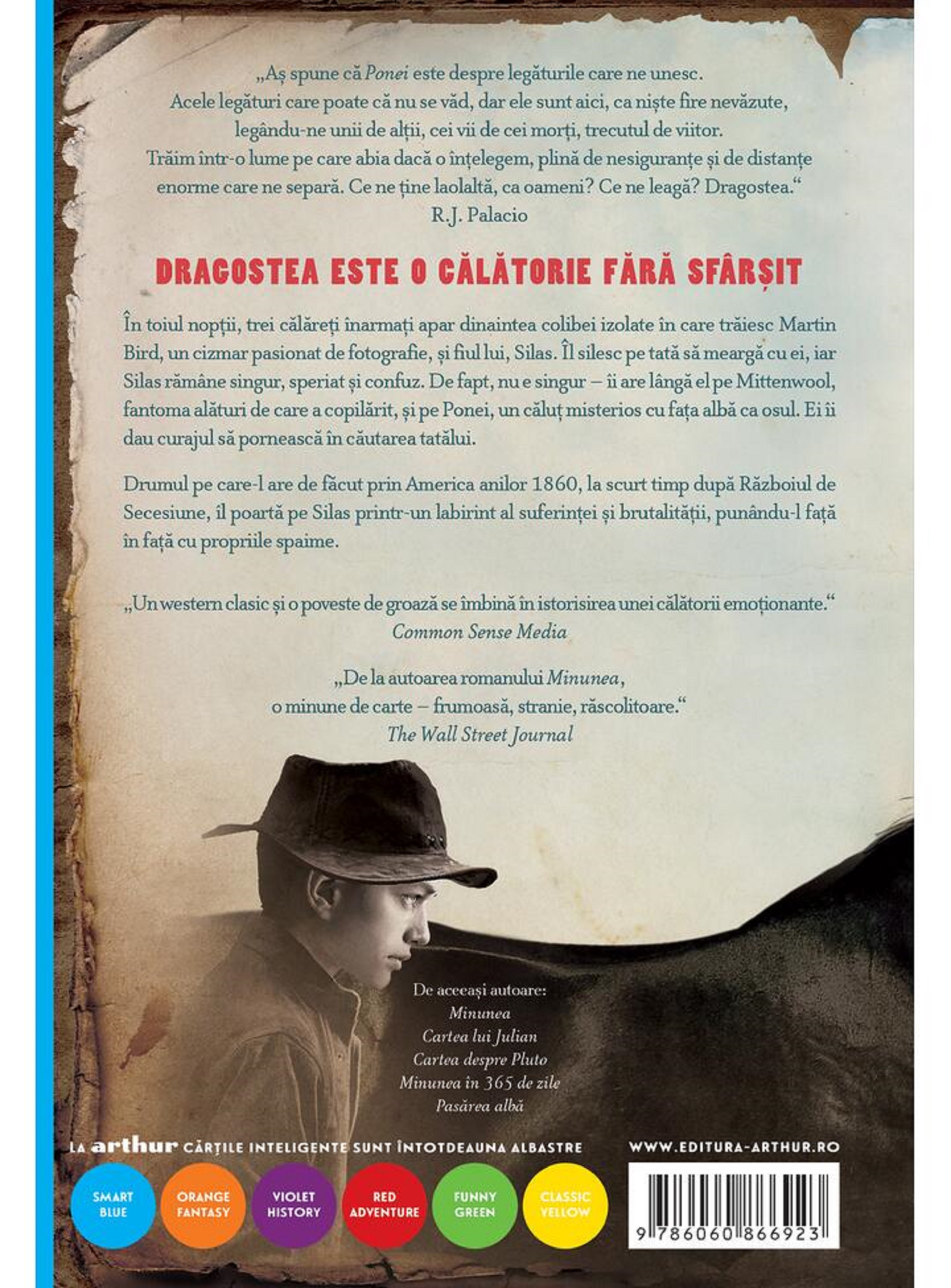 "Aș spune că Ponei este despre legăturile care ne unesc. Acele legături care poate că nu se văd, dar ele sunt aici, ca nişte fire nevăzute, legându-ne unii de alții, cei vii de cei morți, trecutul de viitor. Traim într-o lume pe care abia dacă o înțelegem, plină de nesiguranțe și de distanțe enorme care ne separă. Ce ne ține laolaltă, ca oameni? Ce ne leagă? Dragostea." R.J. Palacio