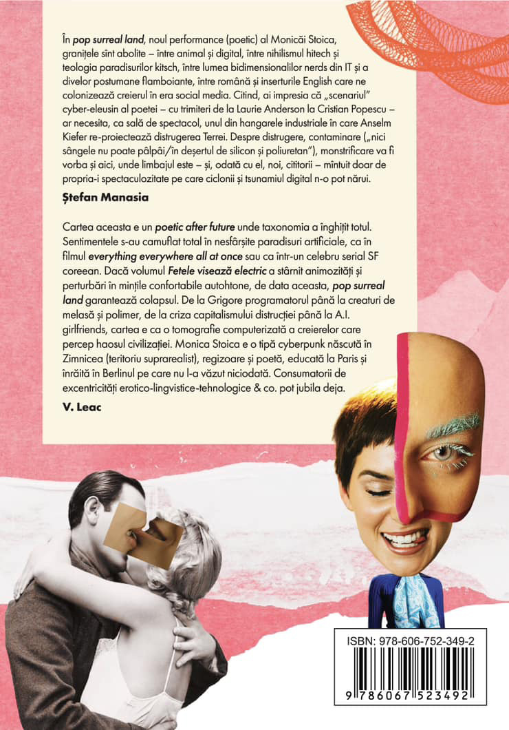 ... noul performance (poetic) al Monicăi Stoica, granițele sunt abolite - între animal și digital, între nihilismul hitech și teologia paradisurilor kitsch, între lumea bidimensionalilor nerds din IT și a divelor postume flamboiante, între română și inserturile English care ne colonizează creierul în era social-media... - Ștefan Manasia