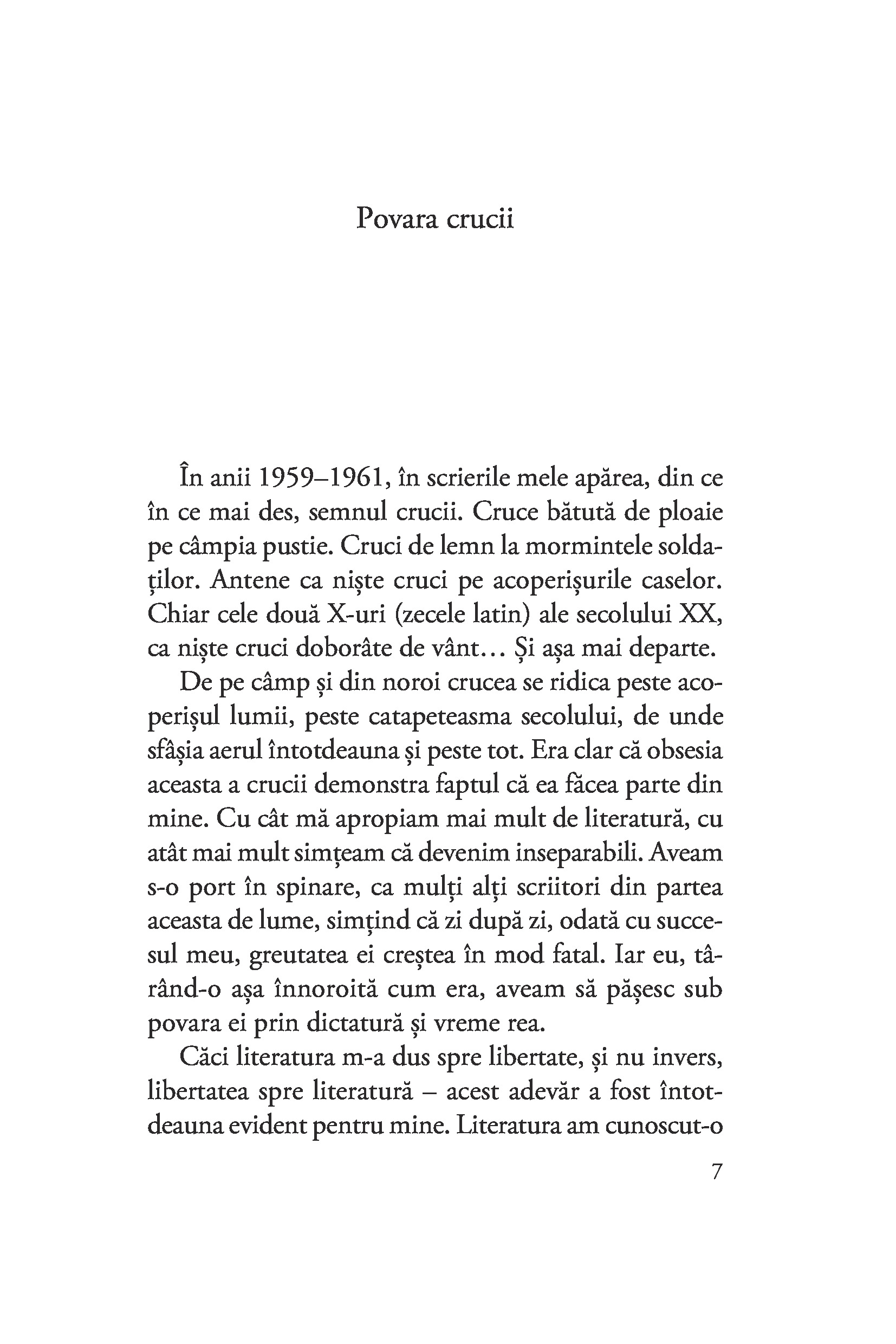 Povara crucii este un inventar al mişcărilor tactice neaşteptate, al zigzagului continuu şi derutant din războiul, rareori făţiş, dintre scriitor şi stat, în care fiecare rând scris trebuia plătit cu o umilinţă, cu o retragere, cu un compromis, dar totuşi în absenţa „marelui compromis“ la care au ajuns atât de mulți scriitori, fără o predare necondiţionată, fără o pactizare cu regimul. În ultimă instanţă, Povara crucii este un drum al calvarului cristic, parcurs de un scriitor celebru braţ la braţ cu opera sa, sub biciul nemilos al dictaturii.