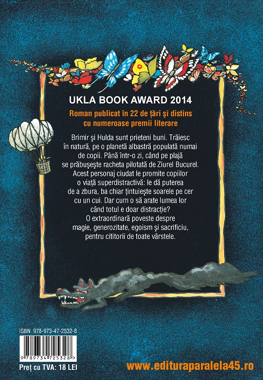 Brimir şi Hulda sunt prieteni buni. Trăiesc în natură, pe o planetă albastră populată numai de copii. Până într-o zi, când pe plajă se prăbuşeşte racheta pilotată de Ziurel Bucurel. Acest personaj ciudat le promite copiilor o viaţă superdistractivă: le dă puterea de a zbura, ba chiar ţintuieşte soarele pe cer cu un cui. Dar cum o să arate lumea lor când totul e doar distracţie?