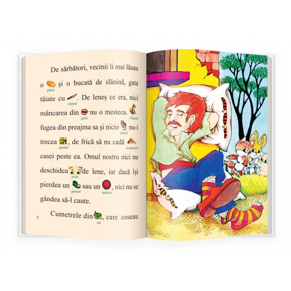 Cartea include ilustrații deasupra cuvintelor, pentru a ușura asocierea cuvânt-sens. Ilustrațile simpatice și fontul de dimensiuni mari vor face ca lectura să fie mai ușor de parcurs, iar cartea mai atrăgătoare.