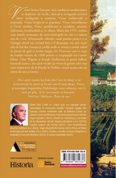 Viena! Inima Europei. Aici, tradiția și modernitatea se împletesc de secole, clasicul și avangarda coexistă întru inteligență și armonie. Viena tradițională și imperială, Viena burgheză și populară, Viena triumfătoare și Viena umilită, Viena republicană și socialistă, anexată, răzbunată, bombardată și, în sfârșit, liberă din 1955, acestea sunt marile momente ale unei metropole în care s-a născut arta de a trăi. Minunatele cafenele, unde putem petrece o zi întreagă citind sau scriind fără a fi deranjați; cea mai mare sală de bal din Europa și școlile unde se învață și astăzi valsul în ținută de gală și rochie lungă; Art Nouveau care se rupe de tradiție înainte de 1900 pentru ca inspirațiile lui Gustav Klimt, Otto Wagner și Joseph Hoffmann să poată înflori; bisericile baroce, ale căror vitralii au vibrat la geniul celor mai mari muzicieni, de la Haydn la Mahler: orașul acesta este un vârtej de artă și istorie.