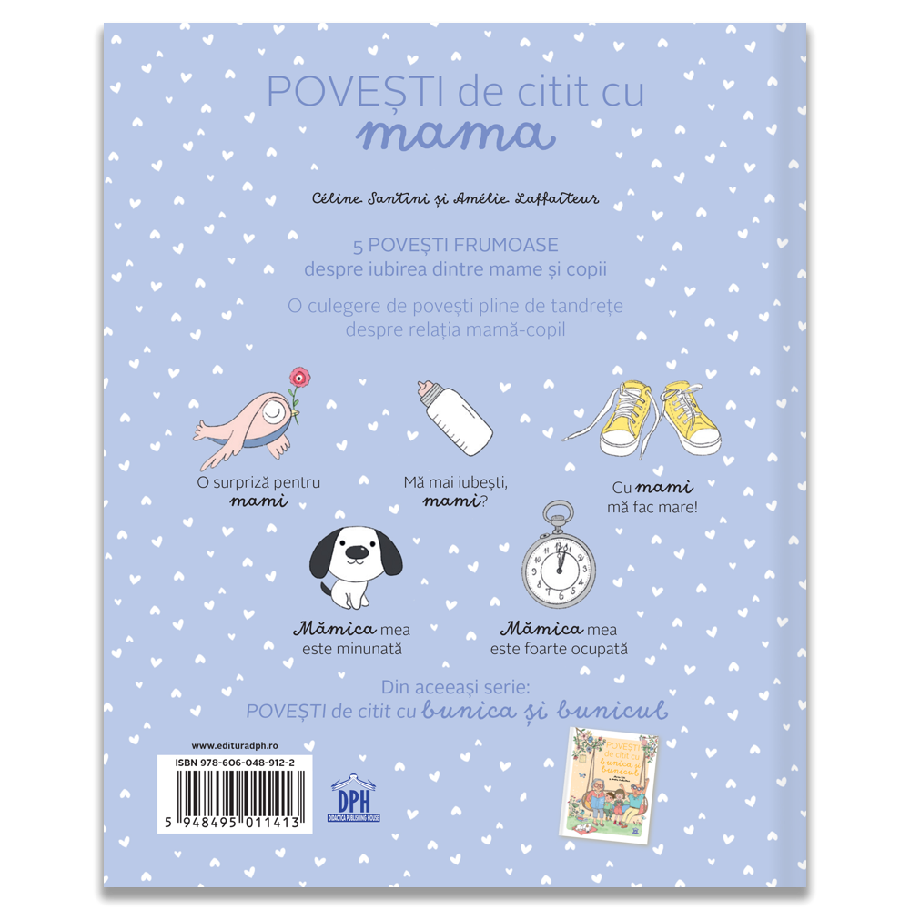 O colecție emoționantă de cinci povești pline de tandrețe care explorează iubirea dintre mame și copii. Fiecare poveste surprinde momente autentice de afecțiune și sprijin, în care micuții învață ce înseamnă dragostea necondiționată și legătura puternică dintre ei și mamele lor.