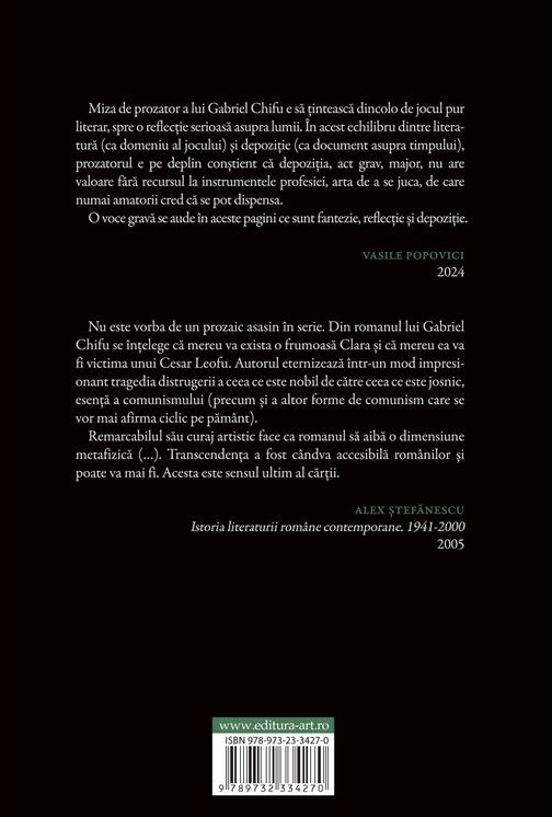Miza de prozator a lui Gabriel Chifu e să ţintească dincolo de jocul pur literar, spre o reflecție serioasă asupra lumii. In acest echilibru dintre literatură (ca domeniu al jocului) și depoziție (ca document asupra timpului), prozatorul e pe deplin conştient că depoziția, act grav, major, nu are valoare fără recursul la instrumentele profesiei, arta de a se juca, de care numai amatorii cred că se pot dispensa.
