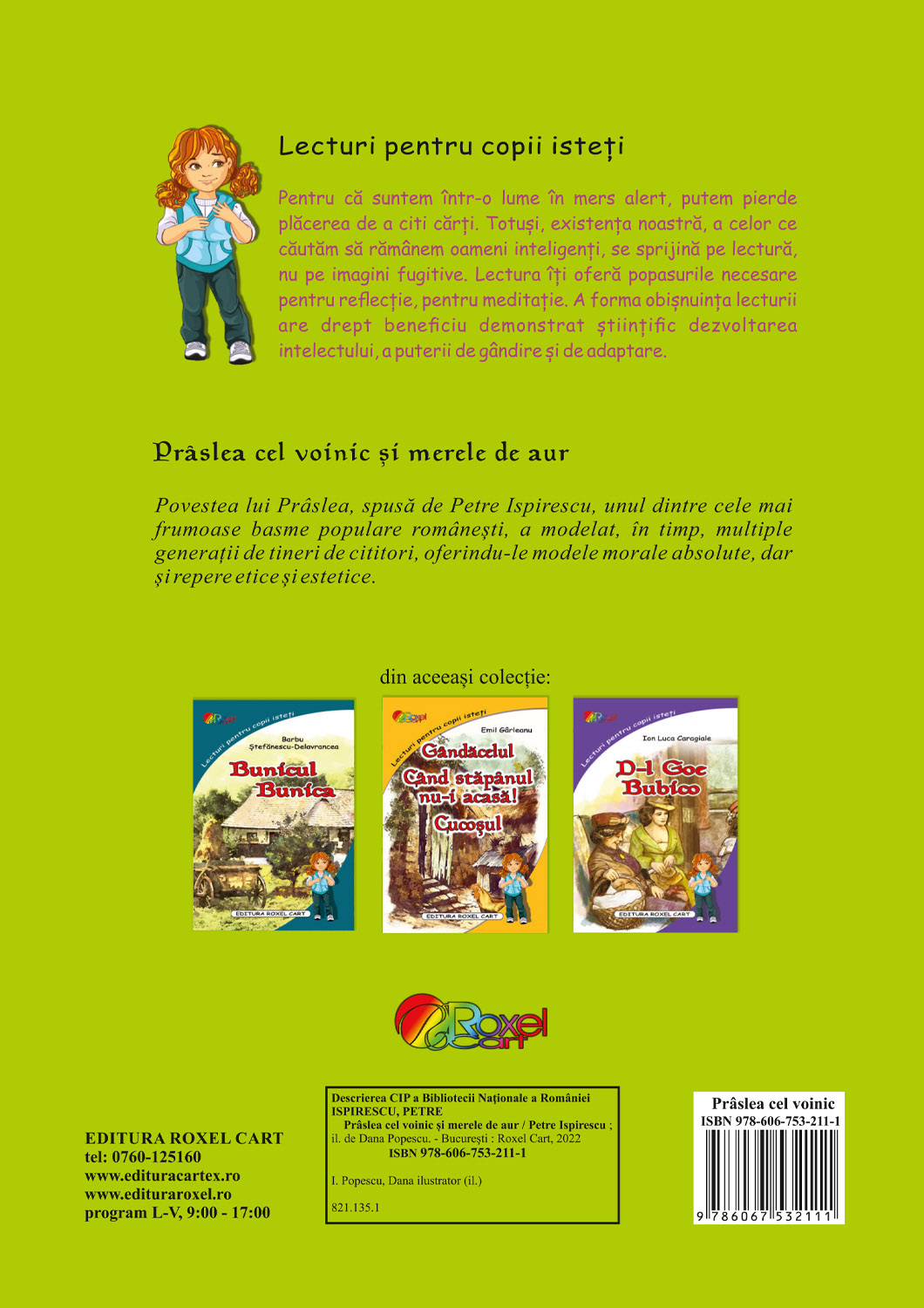 Praslea cel voinic si merele de aur este o poveste adaptata dupa Petre Ispirescu pentru copiii din clasele mici, care abia au invatat sa citeasca. Ilustratiile colorate stimuleaza creativitatea copiilor, care pot vizualiza mai usor firul povestii.