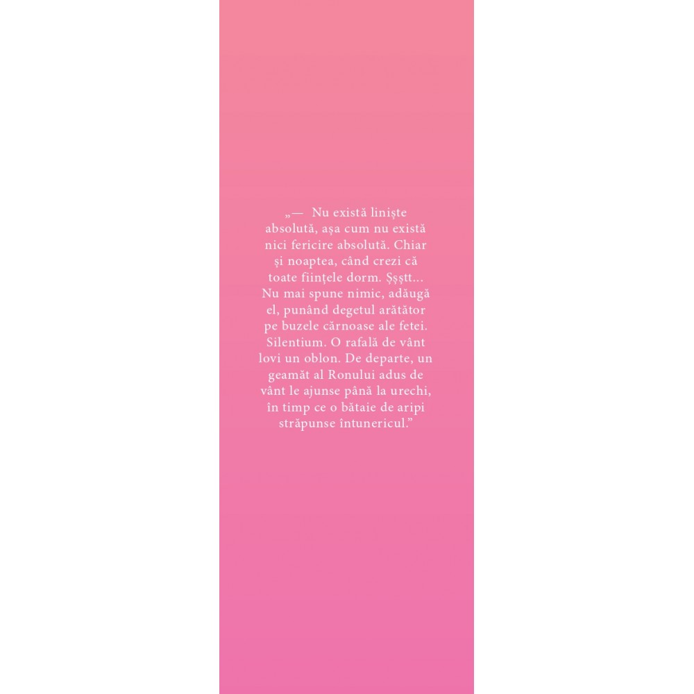 „Fetița dădu din cap de câteva ori de la stânga la dreapta și invers. Tatăl îi spuse că acelea erau semințe tratate cu otravă pentru șobolani și că provocau moartea instantaneu. Și din ziua aceea săculețul dispăru. Moartea? Dar ce mai însemna moartea atunci când aveai antidotul fermecat la îndemână tot timpul? Bijuteria ei miraculoasă anula pătrunderea în eternitate. Plimbările prin oraș când tatăl o lua cu el la piață iar ea, ca să-l amuze, se agăța de fustele femeilor pe lângă care treceau. Pauza pe care o făceau la Boema, el să se răcorească cu o bere Tulceana, iar ea să mănânce o amandină. Serile când ieșea pe stradă din zece în zece minute și le urmărea cum se jucau pe ea și pe sora ei, ca să se asigure că totul era ok. O plimbare împreună pe faleza în ale cărei gropi se cuibărise Dunărea ieșită excepțional din matcă și care reflecta bucăți de cer.”