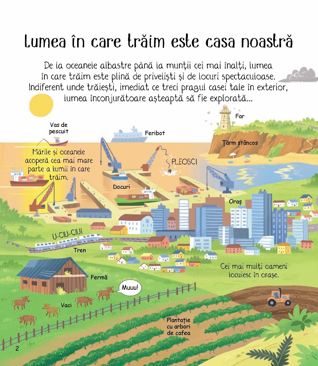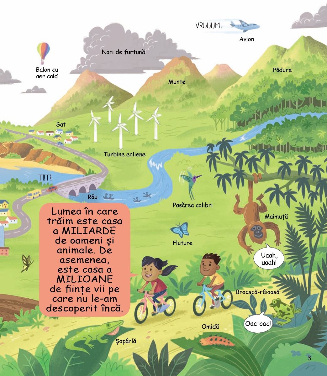 Această carte încântătoare te va duce într-o călătorie în jurul lumii, prin păduri tropicale luxuriante, deşerturi aride şi recife de corali care freamătă de viaţă. Este modul ideal în care cei mici pot afla şi învăţa o mulţime de lucruri fascinante despre lumea înconjurătoare.