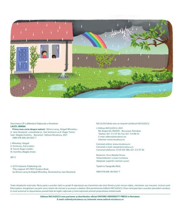 Această carte încântătoare este plină cu sugestii pentru copii în legătură cu ce pot vedea și face afară, în mijlocul naturii: de la a privi florile, pomii și animalele, până la a sări în băltoace sau a merge la săniuș. Imaginile atractive incluse aici ilustrează o multitudine de lucruri pe care cei mici le pot observa în natură și despre care să discute apoi împreună cu prietenii, părinții sau profesorii lor.