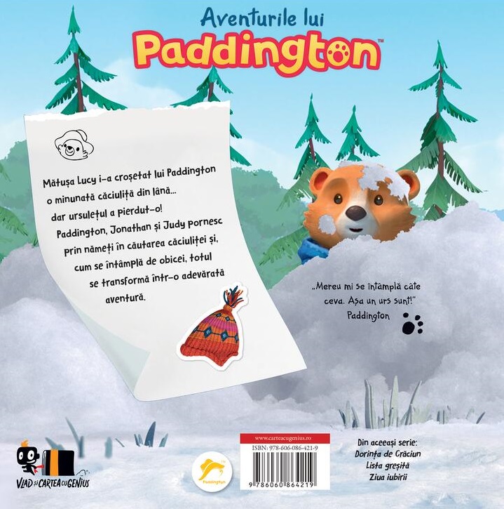 Mătușa Lucy i-a croșetat lui Paddington o minunată căciuliță din lână... dar ursulețul a pierdut-o! Paddington, Jonathan și Judy pornesc prin nămeți în căutarea căciuliței și, cum se întâmplă de obicei, totul se transformă într-o adevărată aventură.