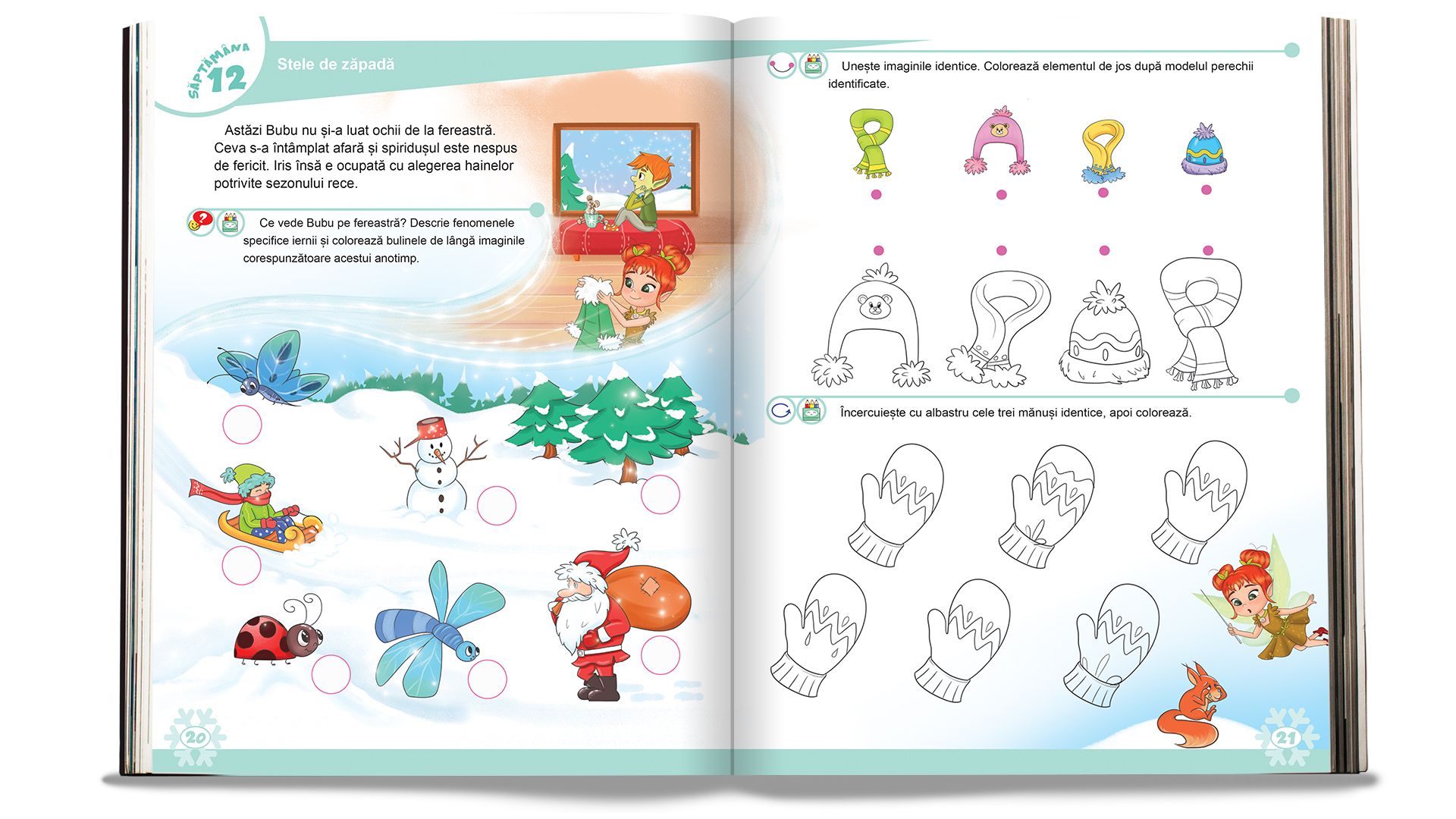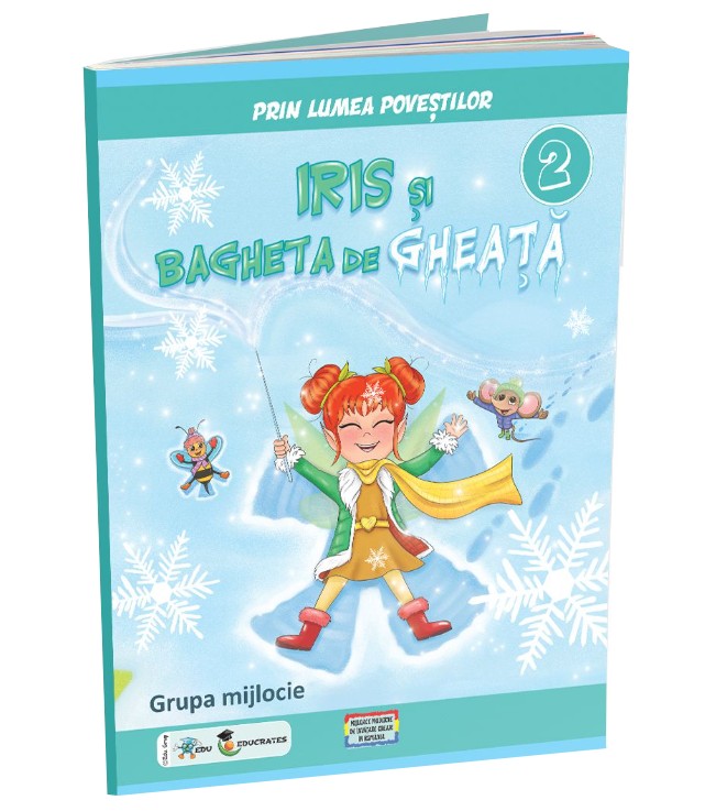 Al doilea caiet, ,,Iris și bagheta de gheață”, continuă seria anotimpurilor prezentând în paginile sale fișe de lucru cu elemente specifice anotimpului iarna. Cele două personaje îndrăgite, zâna Iris și spiridușul Bubu însoțesc preșcolarii în călătoria cunoașterii prin toate domeniile de dezvoltare.