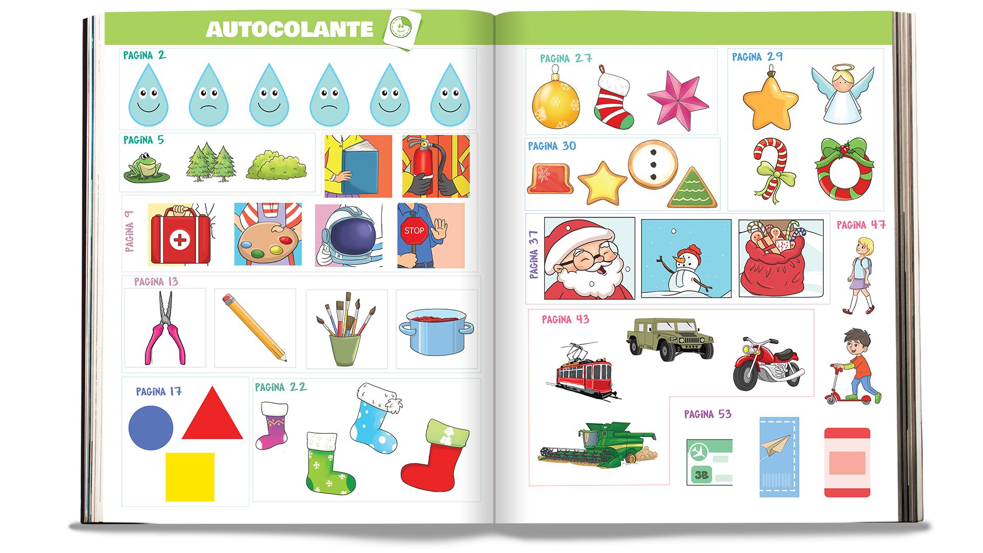 Sarcinile sunt adaptate vârstei, ilustrațiile sunt vesele și atractive, iar pentru un plus de informație sunt inserate în paginile caietului rubrici precum Știați că, Zâna ne învață, Curiozitatea spiridușului. De asemenea, Cutia cu idei ajută la exersarea abilitaților practice, ilustrând variante de confecționare pentru diferite obiecte specifice temei abordate. Autocolantele atractive de la mijlocul caietului pot fi folosite la rezolvarea sarcinilor și conferă paginilor o estetică aparte.