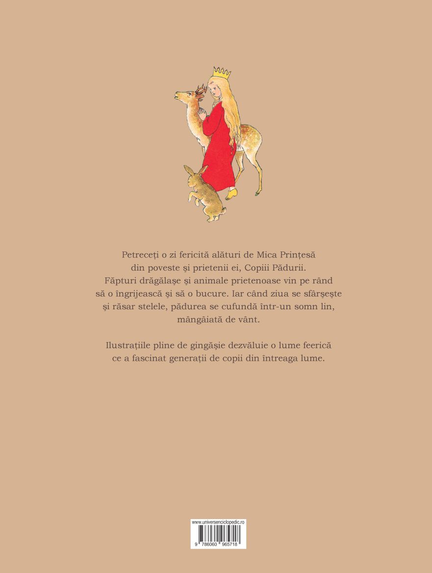 Petreceți o zi fericită alături de Mica Prințesă din poveste și prietenii ei, Copiii Pădurii. Făpturi drăgălașe și animale prietenoase vin pe rând să o îngrijească și să o bucure. Iar când ziua se sfârșește și răsar stelele, pădurea se cufundă într-un somn lin, mângâiată de vânt.