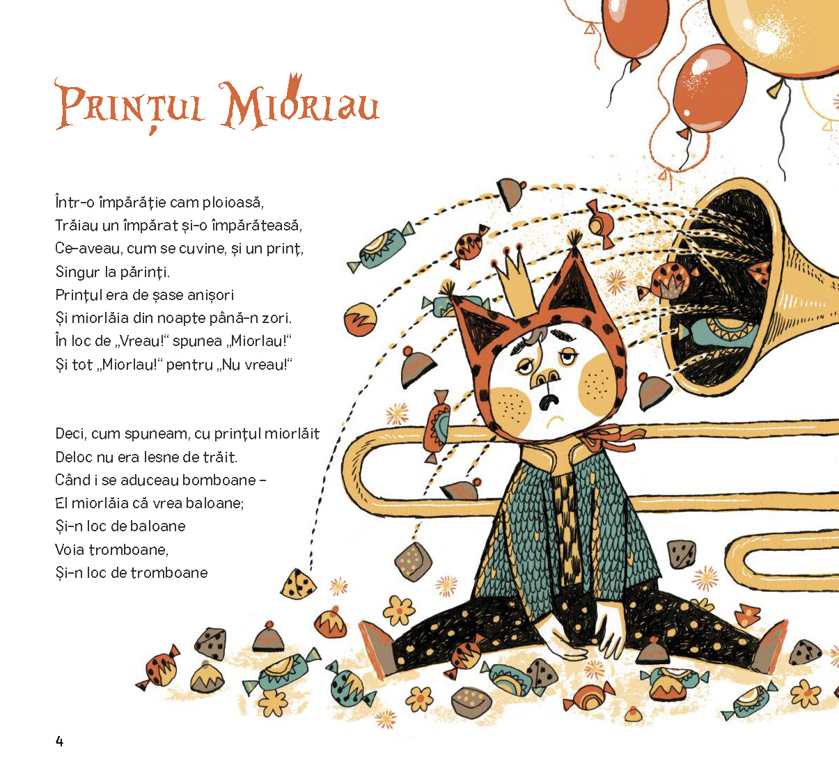 Cu toții fac parte, probabil, dintr-o împărăție bizară, în care Miorlau este prinț, iar restul sunt figuri princiare care de care mai pitorești. Să-i vedem și să-i numărăm (împărăția aceasta nu este numeroasă, pentru că, știm bine, toți copiii sunt cuminți, politicoși și creativi). Iată-i: