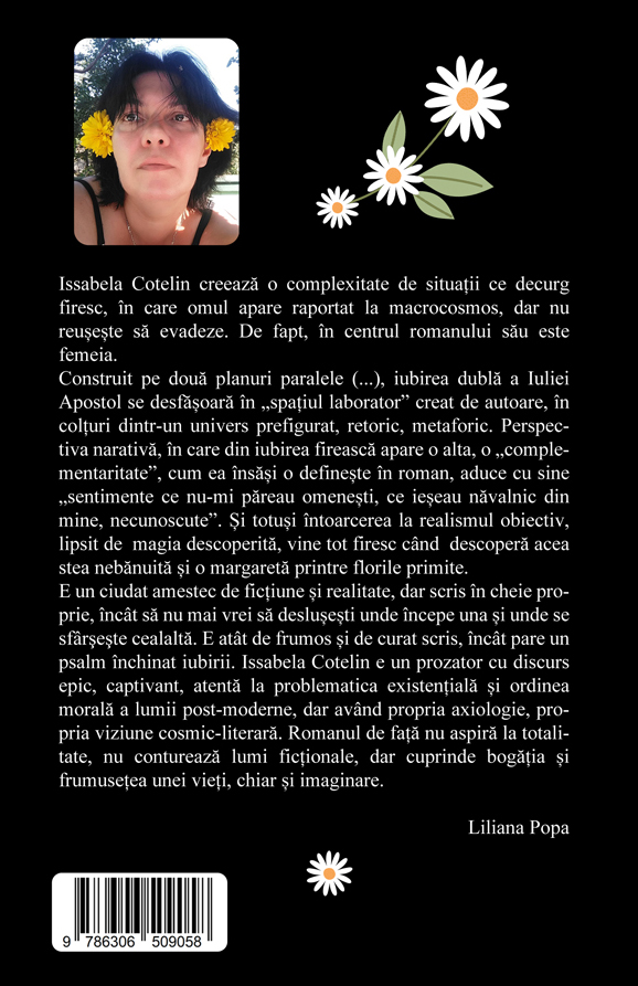Construit pe două planuri paralele (…), iubirea dublă a Iuliei Apostol se desfășoară în „spațiul laborator” creat de autoare, în colțuri dintr-un univers prefigurat, retoric, metaforic. Perspectiva narativă, în care din iubirea firească apare o alta, o „complementaritate”, cum ea însăși o definește în roman, aduce cu sine „sentimente ce nu-mi păreau omenești, ce ieșeau năvalnic din mine, necunoscute”. Și totuși întoarcerea la realismul obiectiv, lipsit de magia descoperită, vine tot firesc când descoperă acea stea nebănuită și o margaretă printre florile primite.