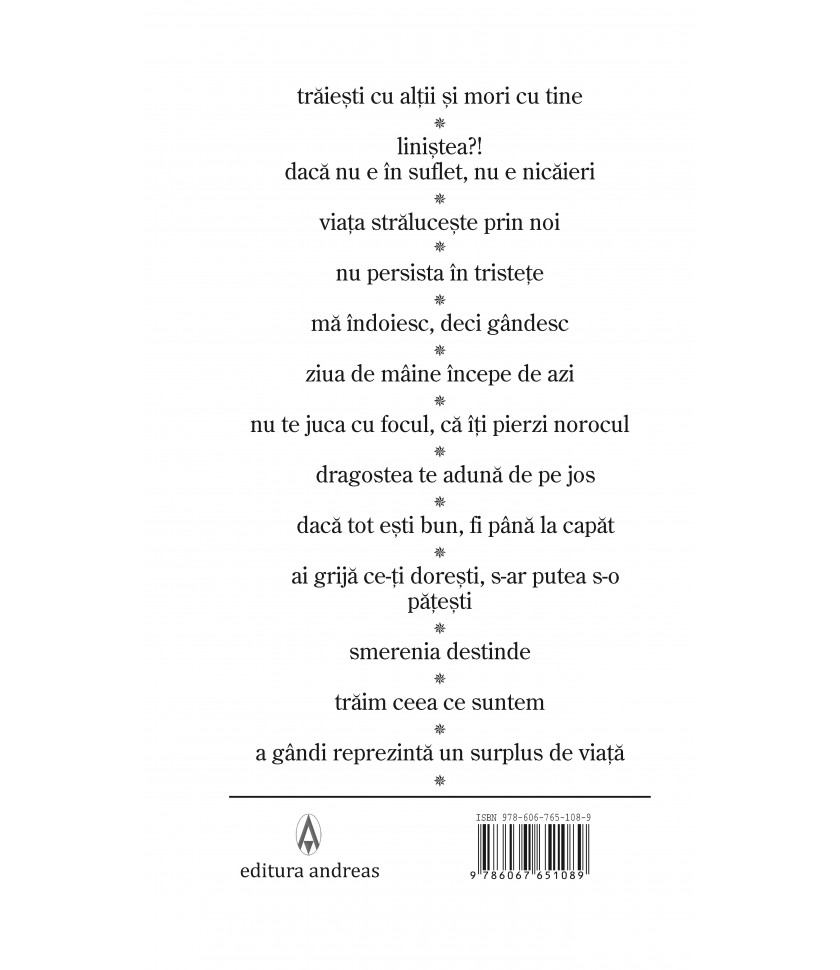 Cu siguranta cartea va fi apreciata de cititorii doritori de texte pline da substanta si care sa transmita prin cuvinte putine ganduri, indemnuri, idei de valoare.