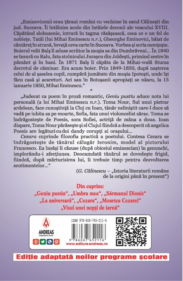 (G. Calinescu – „Istoria literaturii romane de la origini pana in prezent“)