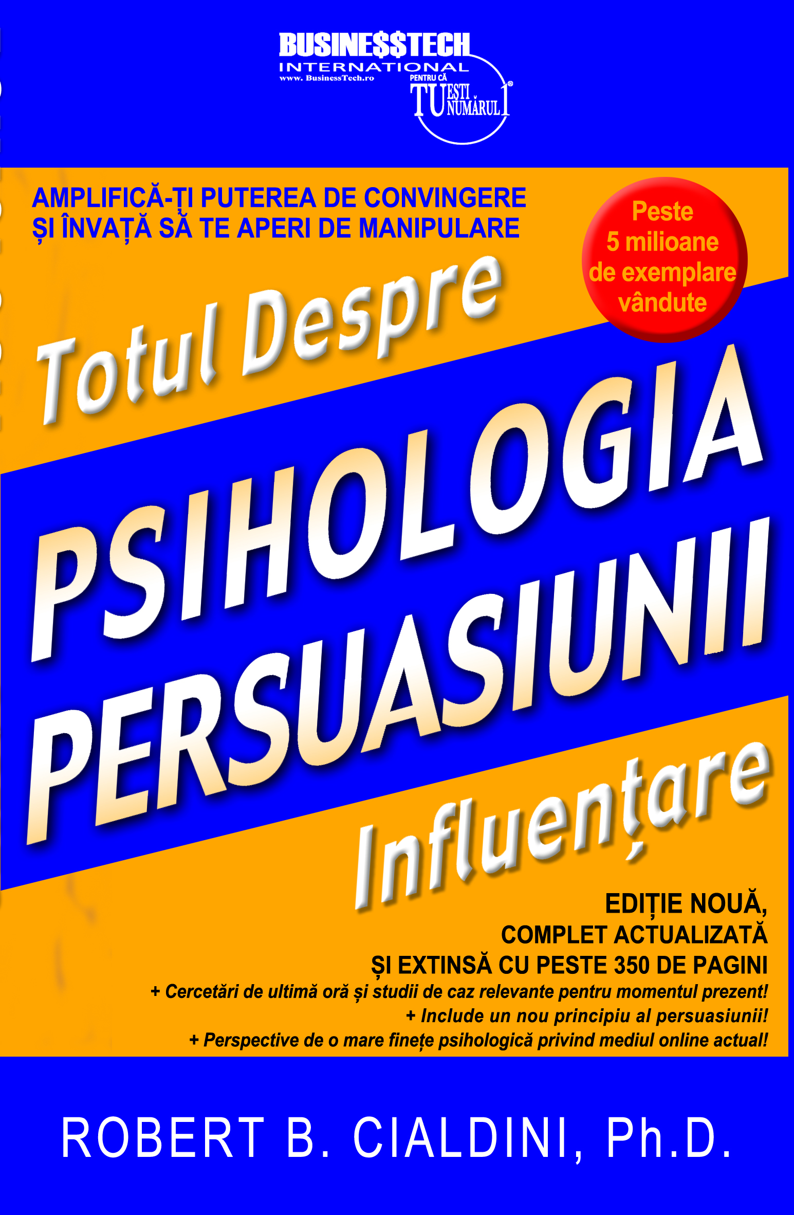 Folosind relatări memorabile și exemple cu care este ușor să empatizezi, Cialdini face surprinzător de ușor de înțeles un subiect de importanță crucială, astfel încât tu să poți deveni persuasiv – și, la fel de important! –, să înveți cum să te protejezi împotriva tentativelor de influențare lipsite de etică. Atunci când nu înțelegi aceste principii, este mult mai posibil să-ți cedezi puterea (sau banii!) unor persoane lipsite de scrupule, dar cu temeinice cunoștințe de psi- hologie umană. Dr. Robert Cialdini este recunoscut ca expert de nivel mondial pentru contribuțiile sale fundamentale privind înțelegerea influențării și aplicarea ei etic în afaceri. Și-a dedicat peste 35 de ani cercetărilor academice privind ce-i determină pe oameni să spună „Da” solicitărilor făcute de alții în circumstanțe specifice afacerilor și nu numai, iar Principiile Persuasiunii enunțate de el sunt astăzi piatra de temelie a oricărei organizații care dorește să-și sporească onest și constant eficiența în vânzări, leadership, marketing, management și comunicare.