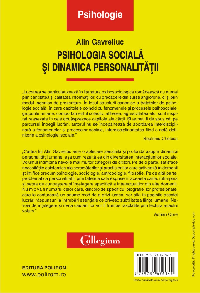 „Cartea lui Alin Gavreliuc este o aplecare sensibilă și profundă asupra dinamicii personalității umane, așa cum rezultă ea din diversitatea interacțiunilor sociale. Volumul întîmpină nevoile mai multor categorii de cititori. Pe de o parte, satisface necesitățile epistemice ale cercetătorilor și practicienilor care activează în domenii științifice precum psihologie, sociologie, antropologie, filosofie. Pe de altă parte, problematica personalității, prin fațetele sale expuse în această carte, întîmpină și setea de cunoaștere și înțelegere specifică a intelectualilor din alte domenii. Nu mic va fi numărul celor care, dincolo de specificul biografiei lor profesionale, care le conturează un anume mod de a privi lumea, vor afla în paginile acestei lucrări răspunsuri la întrebări esențiale ce privesc subtilitatea ființei umane. Nevoia de înțelegere și rîvna căutării lor vor fi frumos răsplătite prin lectura acestui volum.” (Adrian Opre)