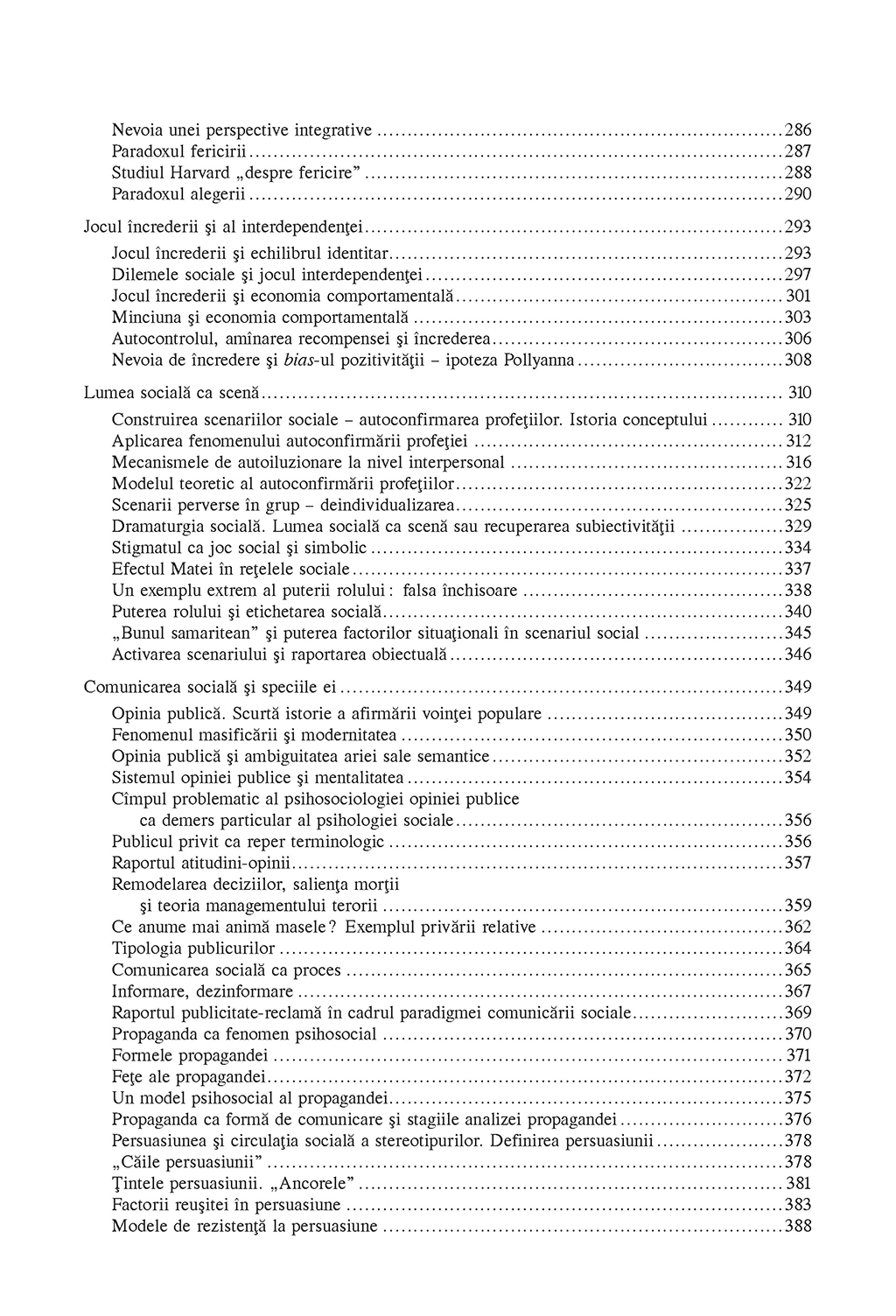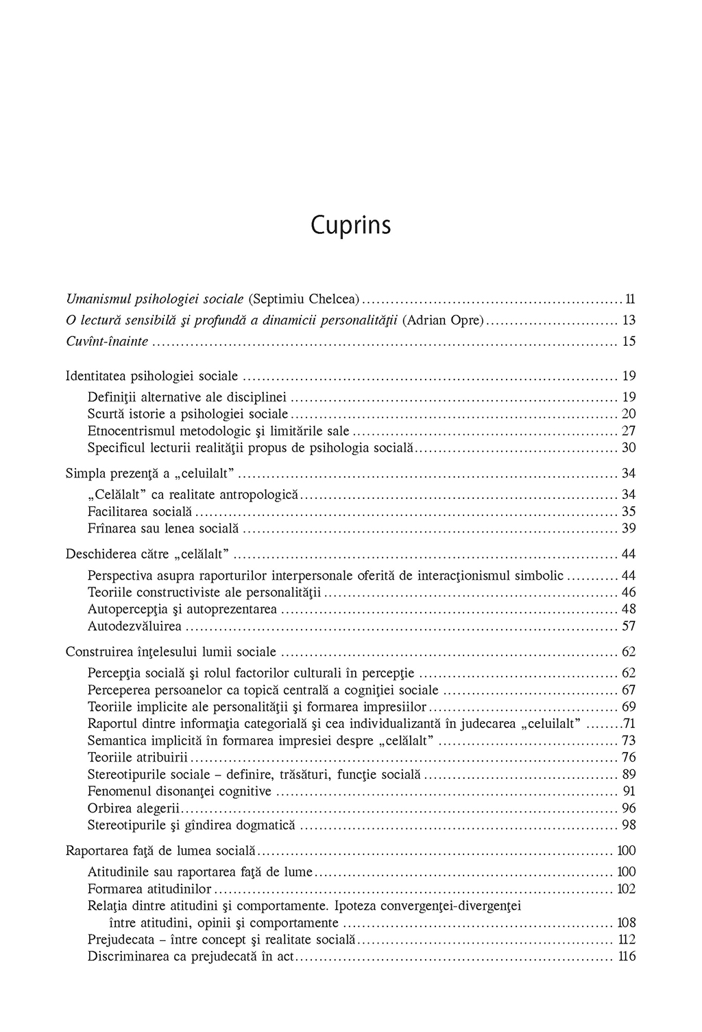 „Lucrarea se particularizează în literatura psihosociologică românească nu numai prin cantitatea și calitatea informațiilor, cu precădere din surse anglofone, ci și prin modul ingenios de prezentare. În locul structurii canonice a tratatelor de psihologie socială, în care capitolele coincid cu fenomenele și procesele psihosociale, grupurile umane, comportamentul colectiv, afilierea, agresivitatea etc. sînt inspirat reașezate în cele douăsprezece capitole ale cărții. Și ar mai fi de spus că, pe parcursul întregii lucrări, autorul nu se îndepărtează de abordarea interdisciplinară a fenomenelor și proceselor sociale, interdisciplinaritatea fiind o notă definitorie a psihologiei sociale.” (Septimiu Chelcea)