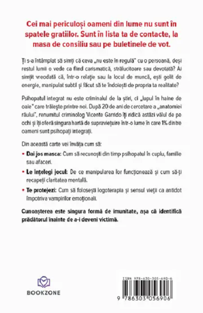 - Identifici pericolul rapid: “Tabelul Psihopatului” devine un ghid în 10 pași, care îți arată dacă ai lângă tine un prădător integrat. Nu mai trebuie să ghicești sau să speri că „se va schimba”.