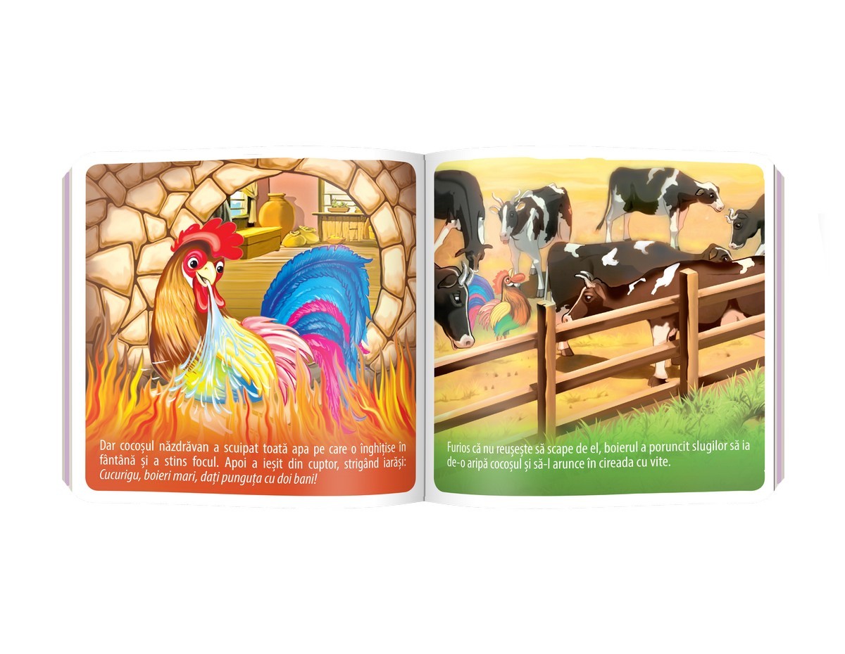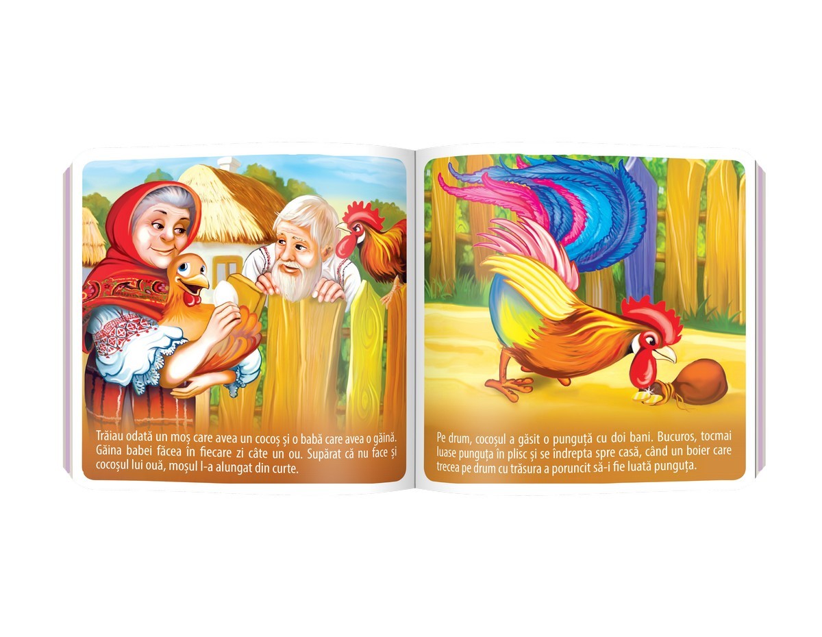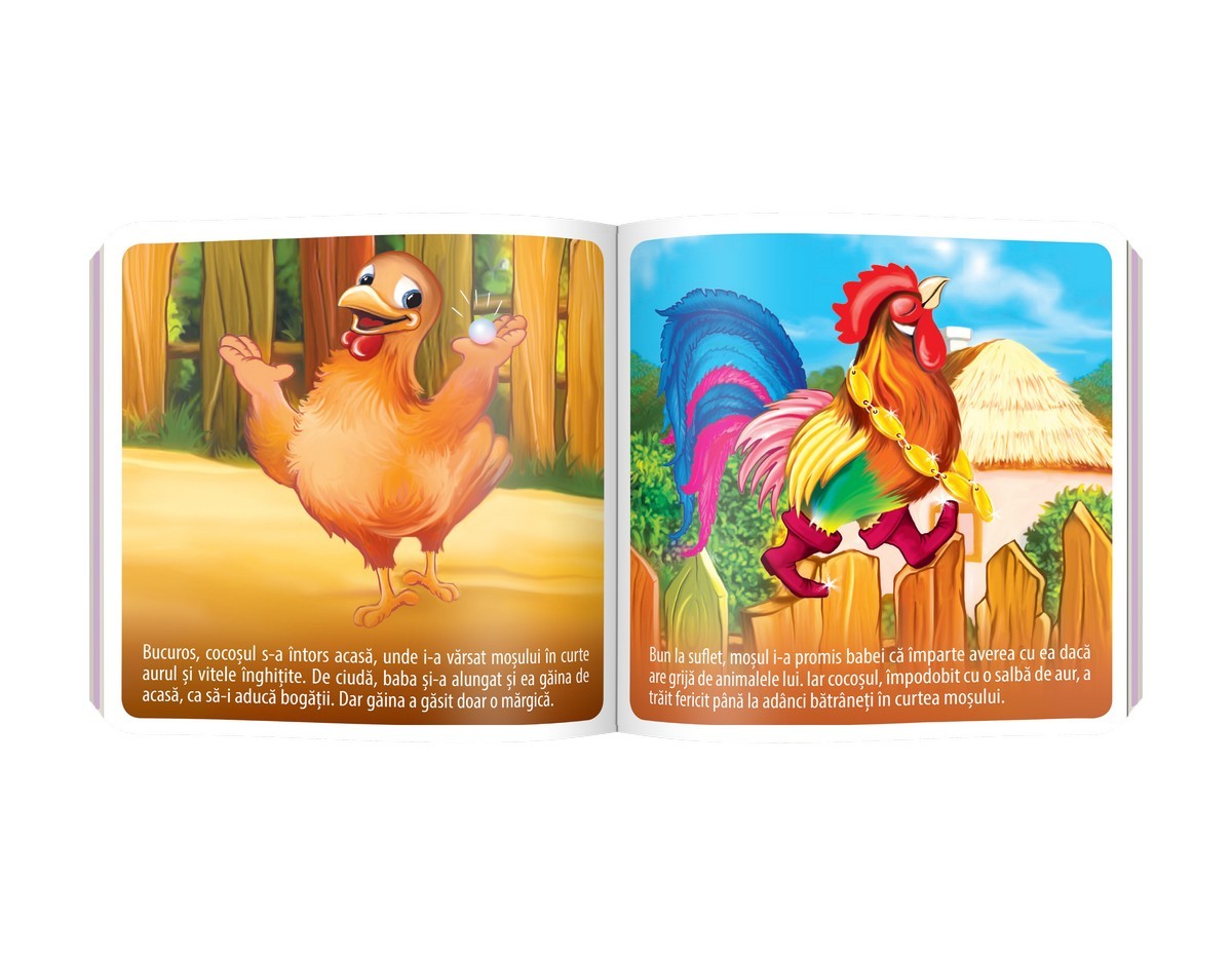 Formatul redus este ideal pentru mânuțele copiilor. Ilustrațiile simpatice îl vor purta pe micuț pe culmile basmelor, stârnindu-i curiozitatea și dorința de a afla finalul poveștii! Cartea de povești îl va ajuta pe copil să își dezvolte limbajul.
